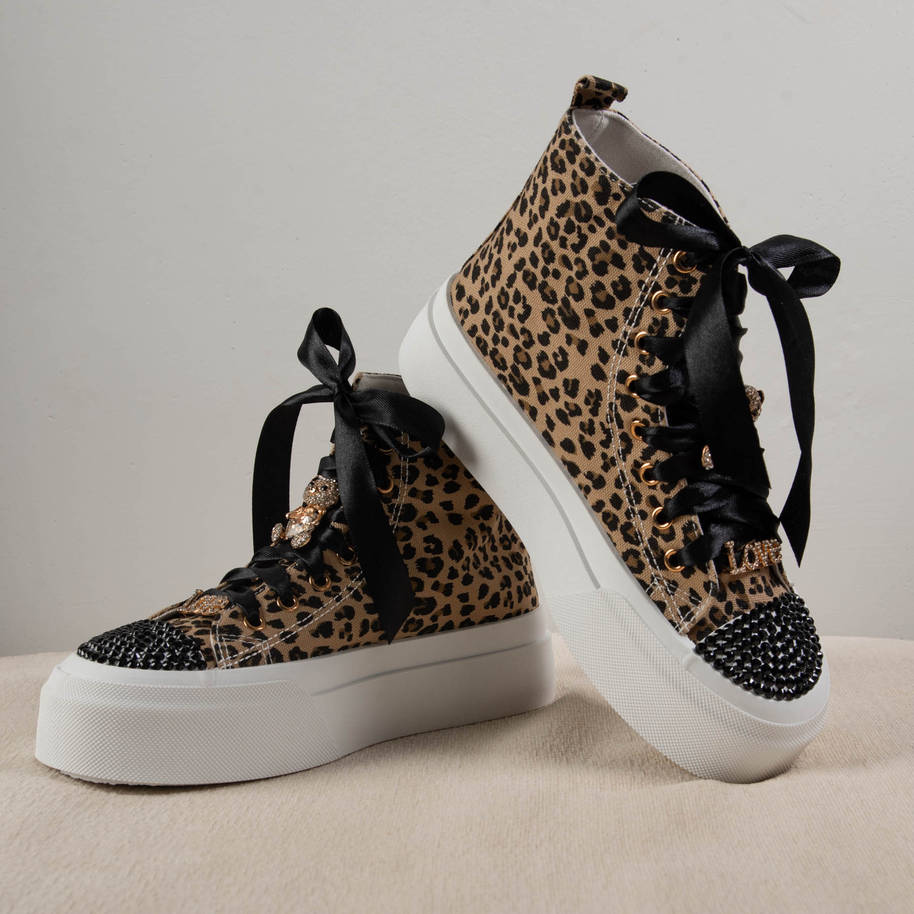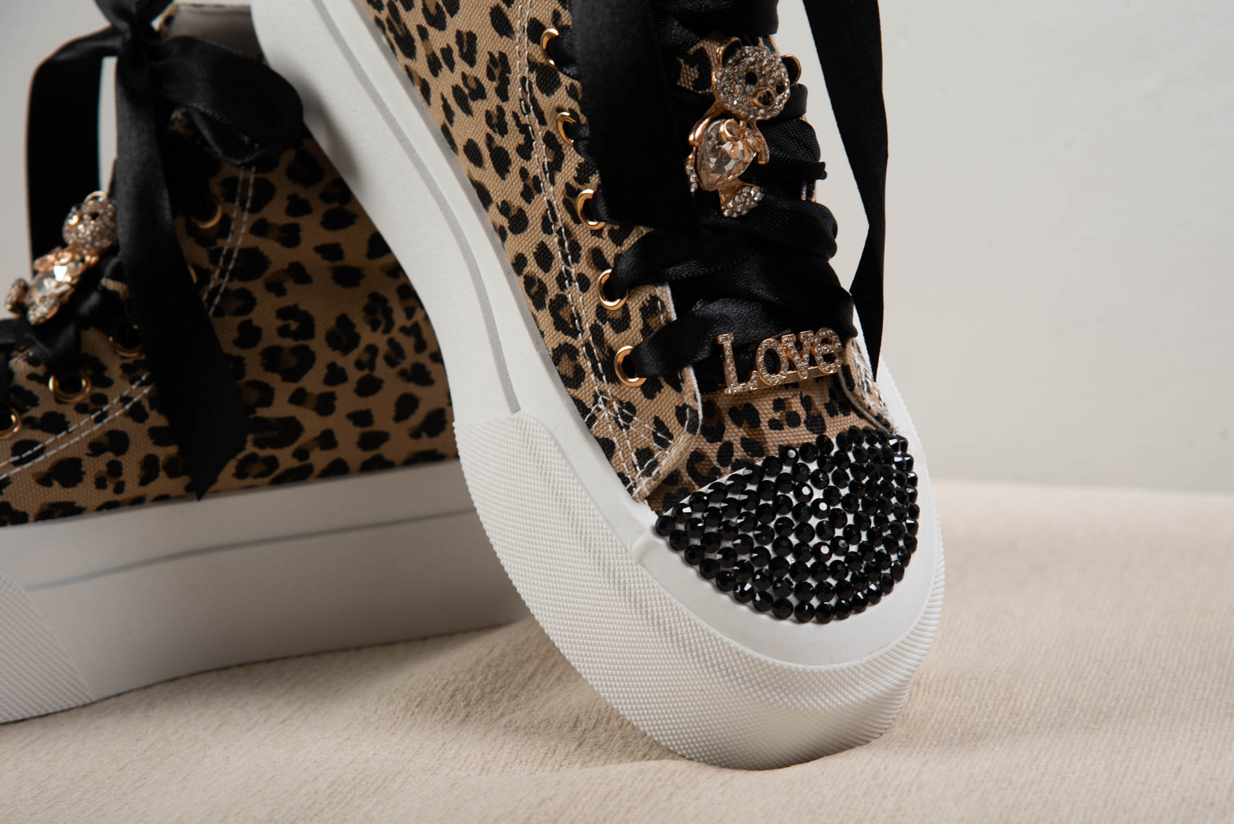 -    -  Custom Sneakers, Προϊόν ειδικής παραγγελίας  -  Leopard Sneakers με Διακοσμητικά Strass & Charms