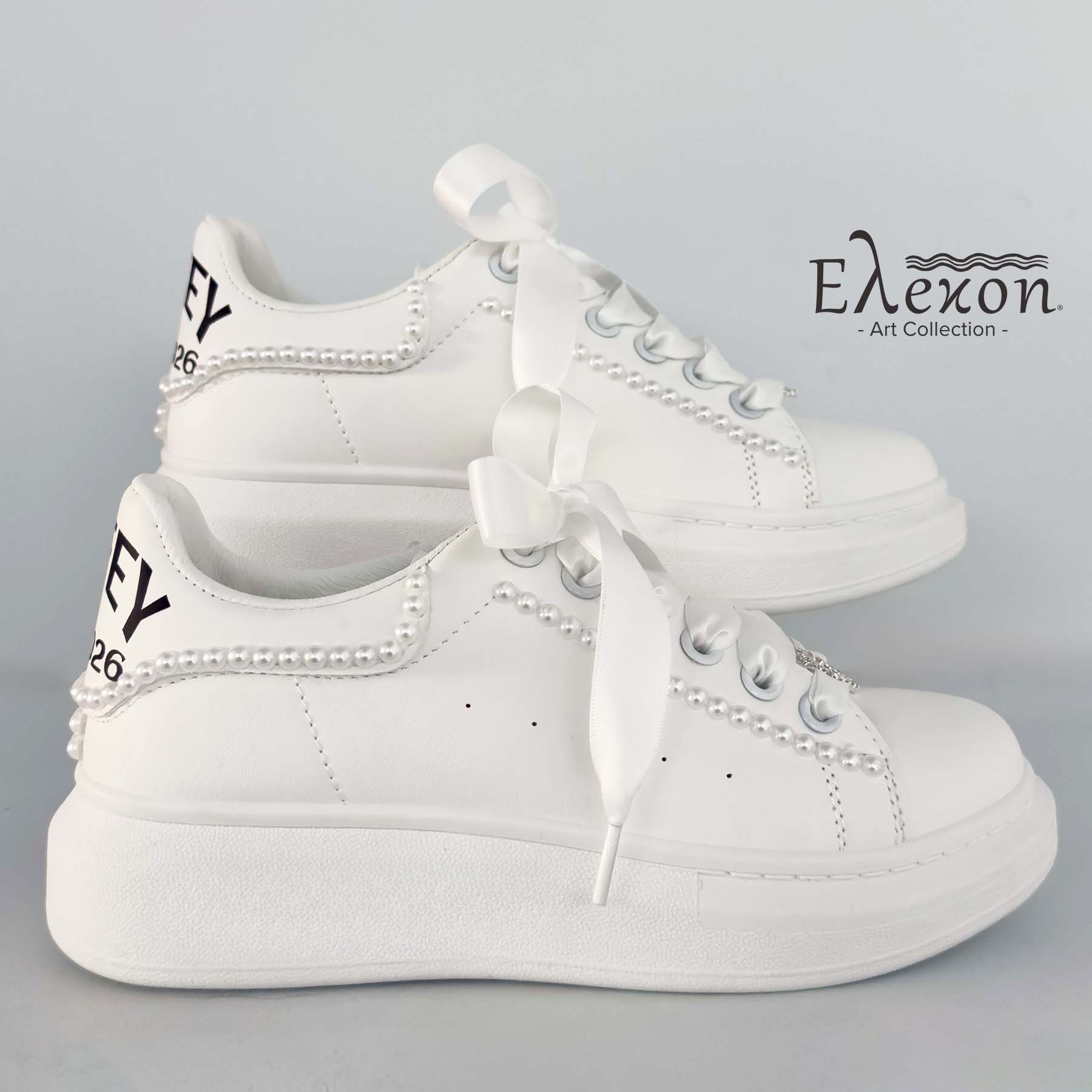-    -  Νυφικά sneakers, Προϊόν ειδικής παραγγελίας  -  Νυφικά Sneakers με πέρλες και Σατέν Κορδόνια – Wifey