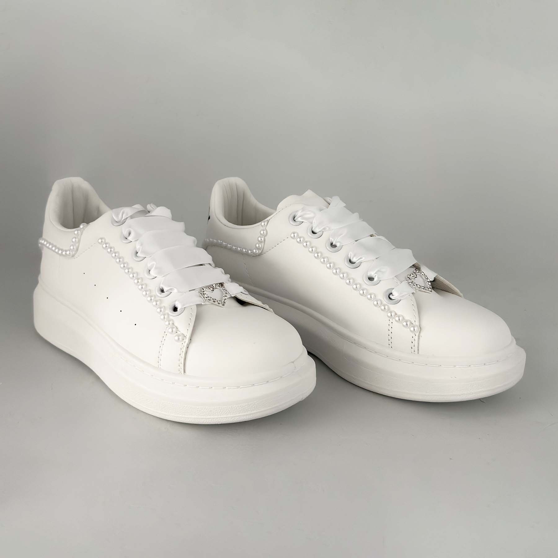 Νυφικά Sneakers με πέρλες και Σατέν Κορδόνια