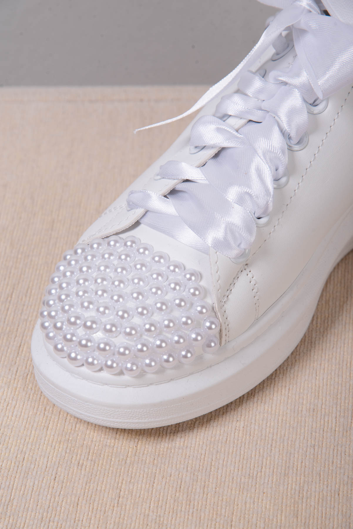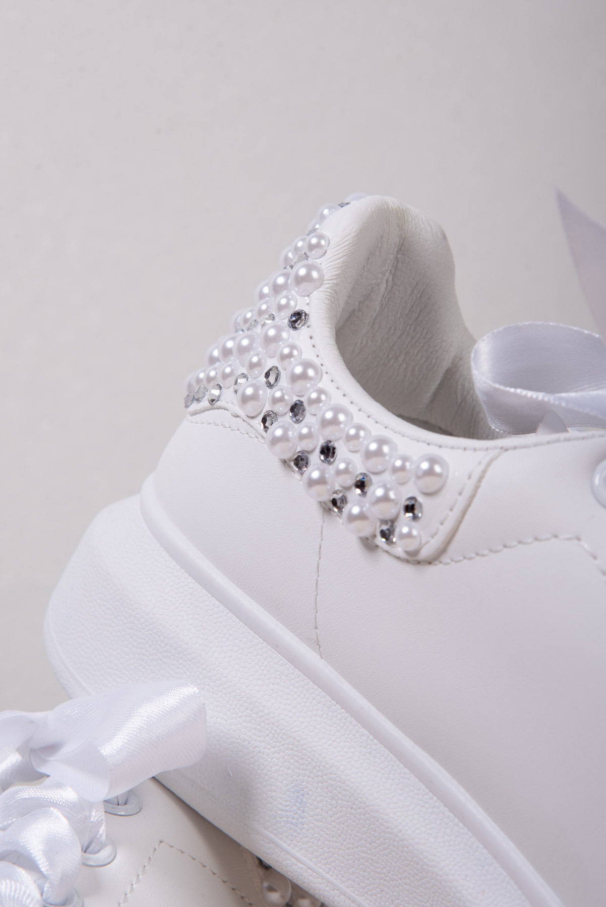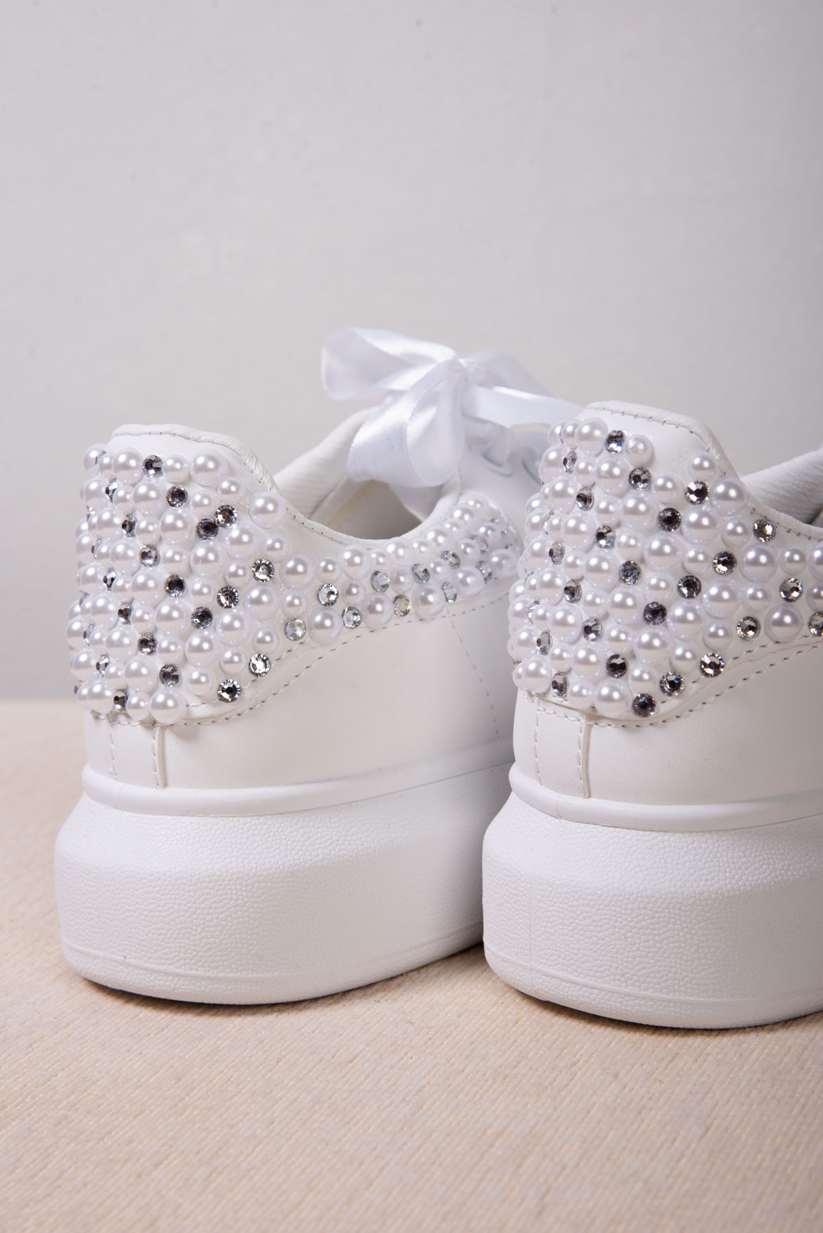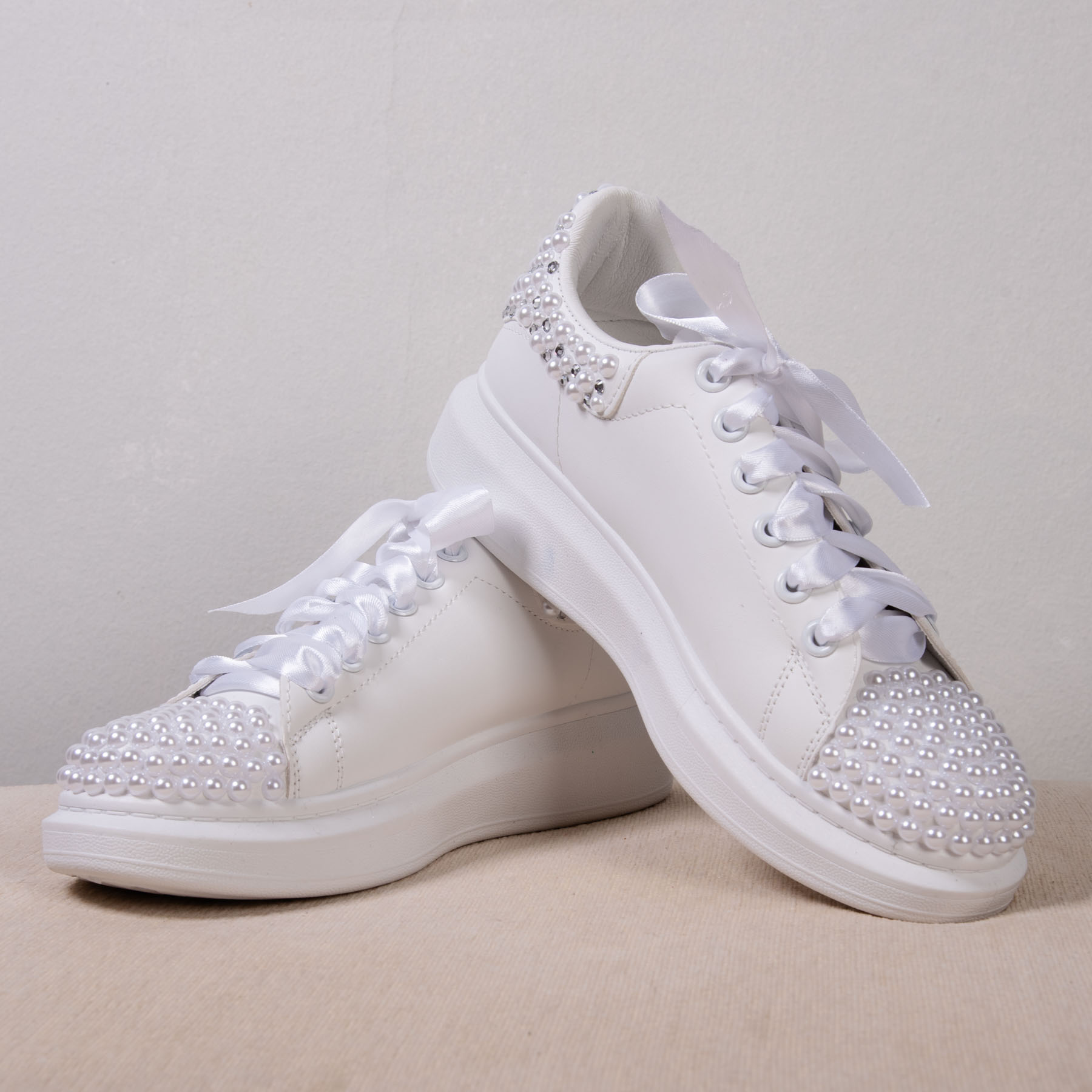 Νυφικά Sneakers με Πέρλες , στρας και Σατέν Κορδόνια – Λευκά