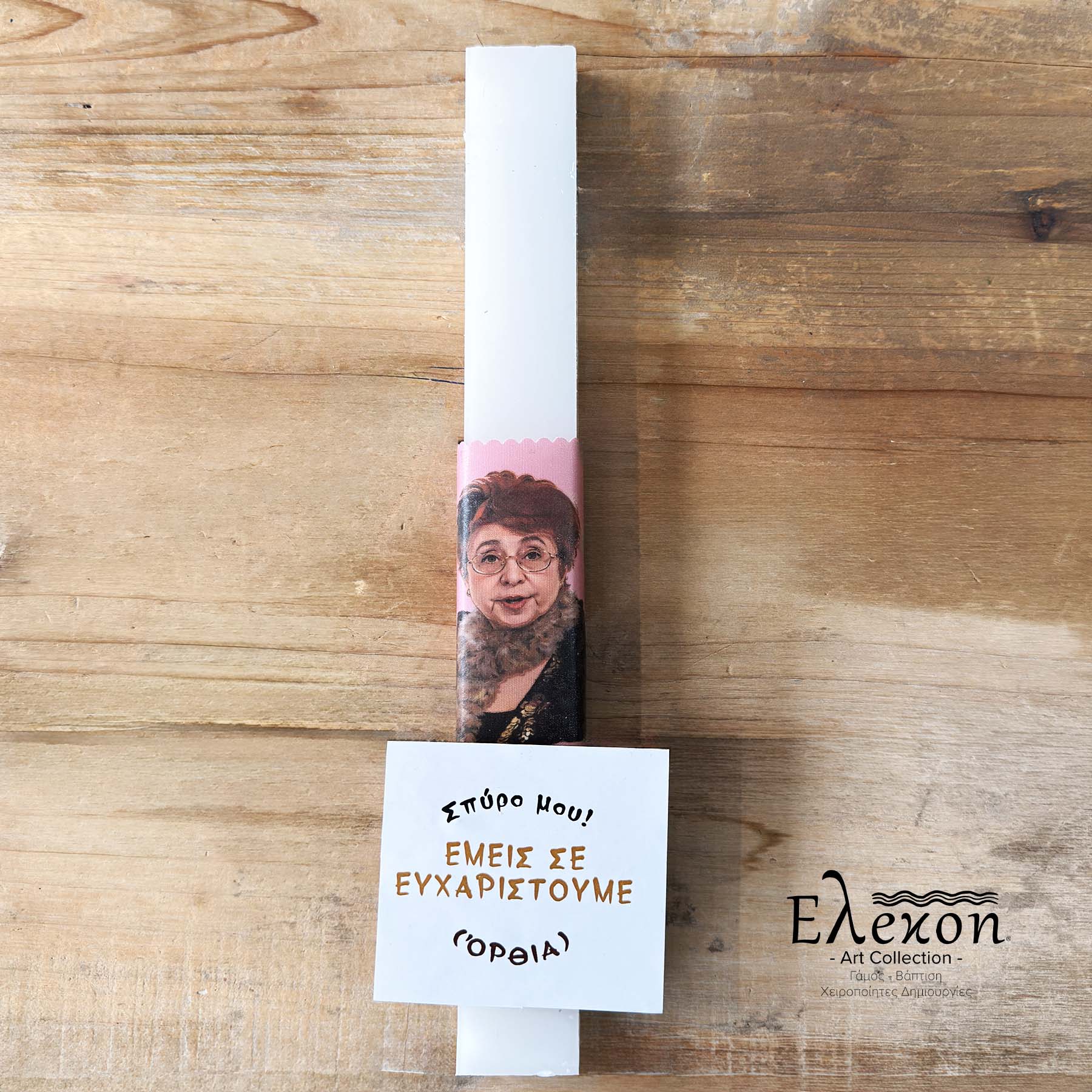 Πασχαλινή λαμπάδα χρώματος λευκή με καδράκι Θεοπούλα