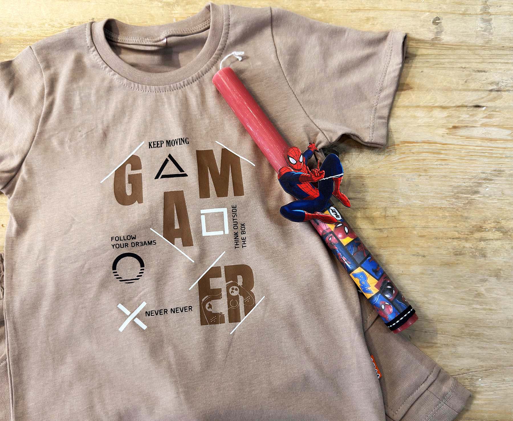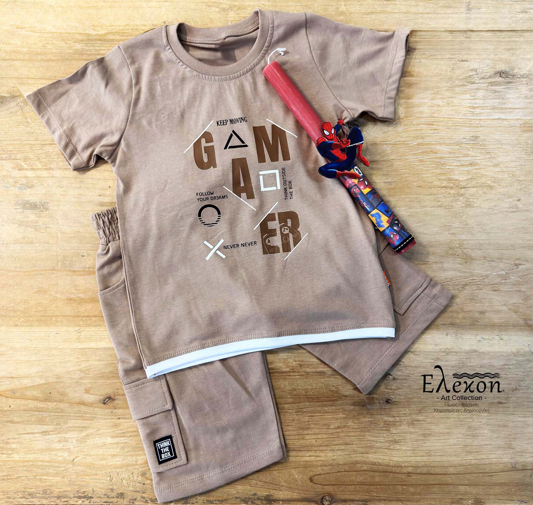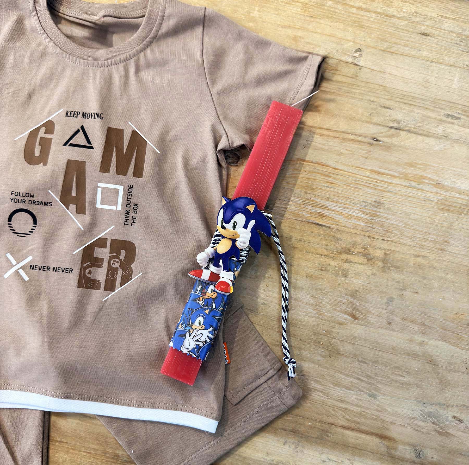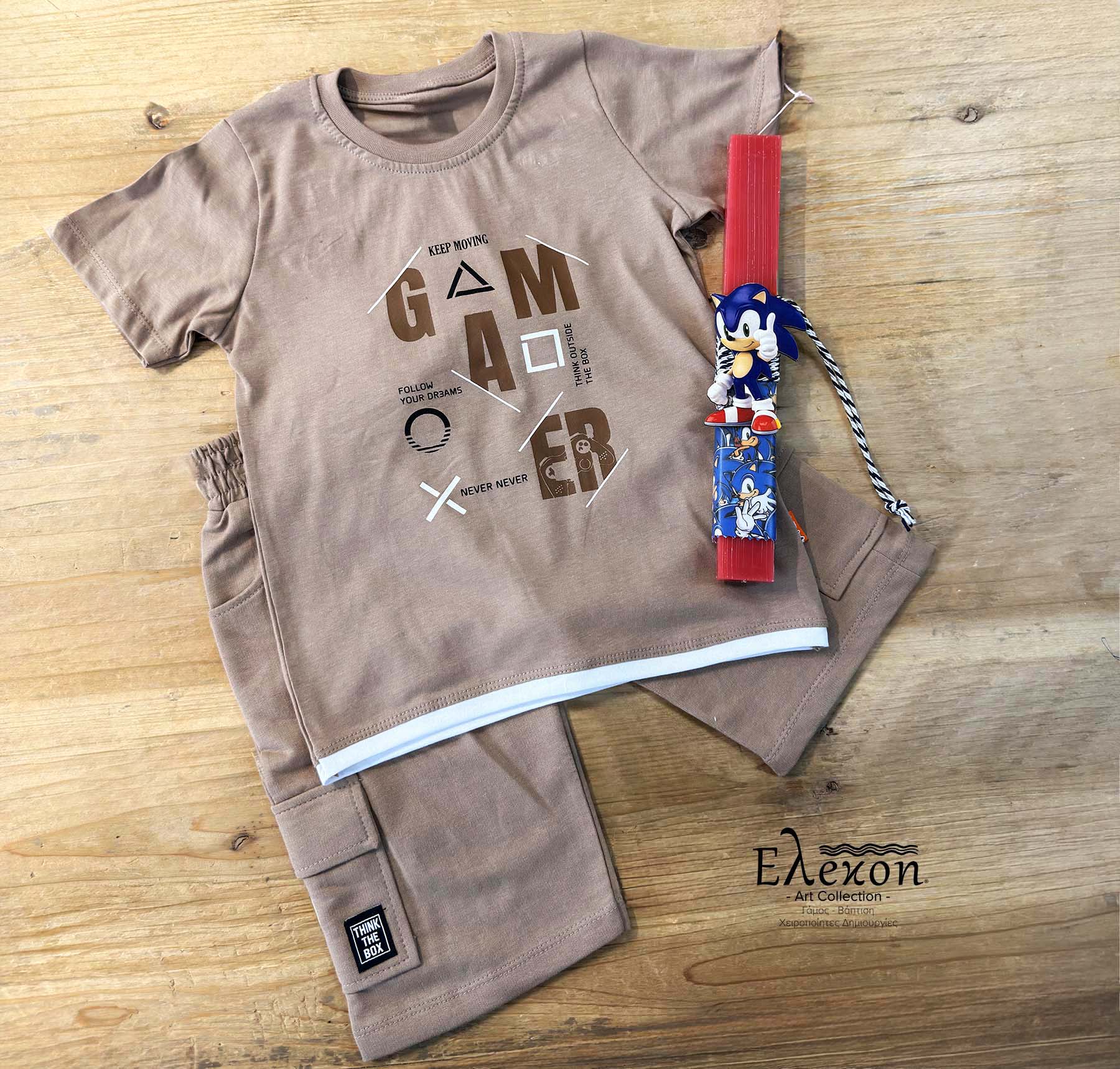 •Σετ 3 τεμαχίων: μπλούζα , βερμούδα & Πασχαλινή λαμπάδα
