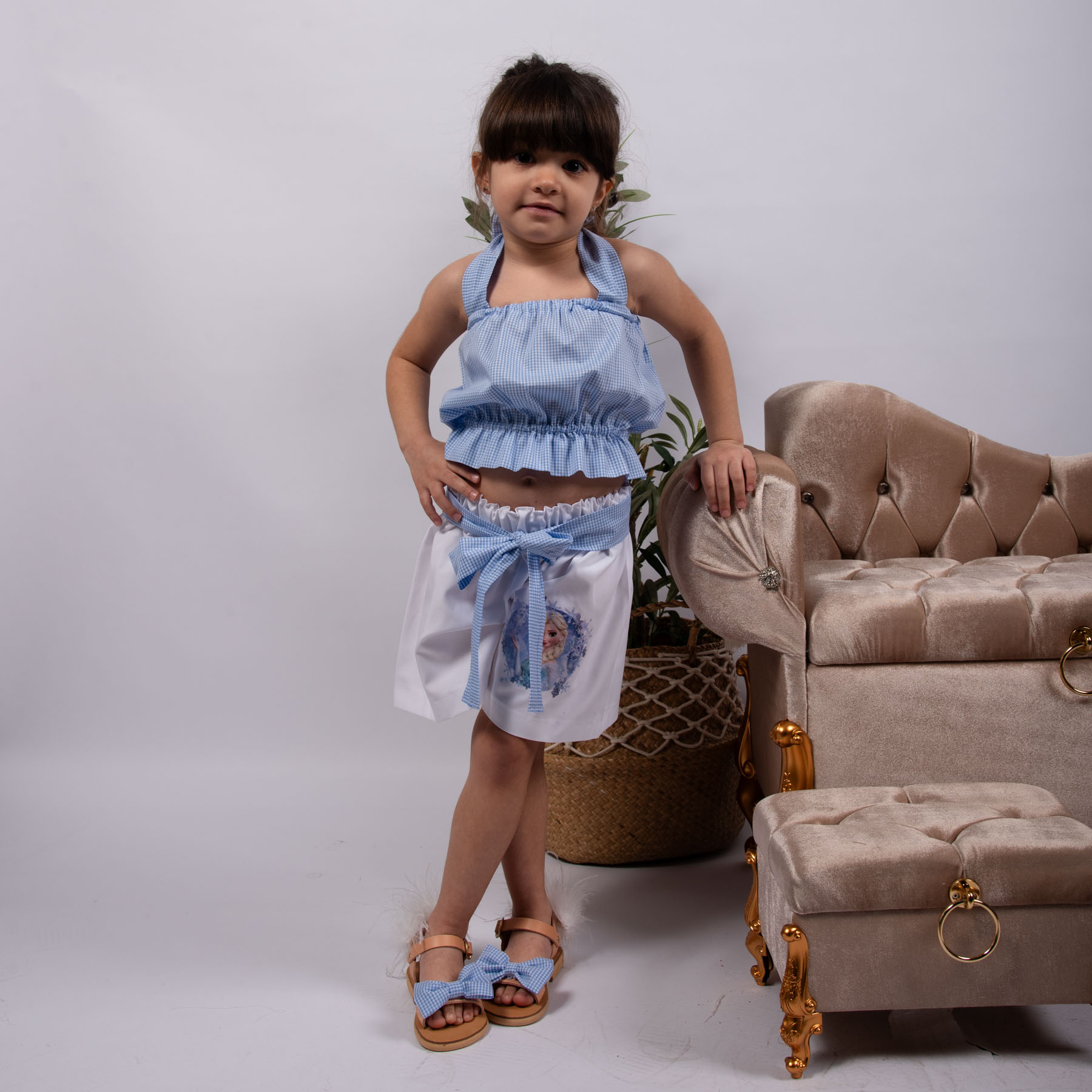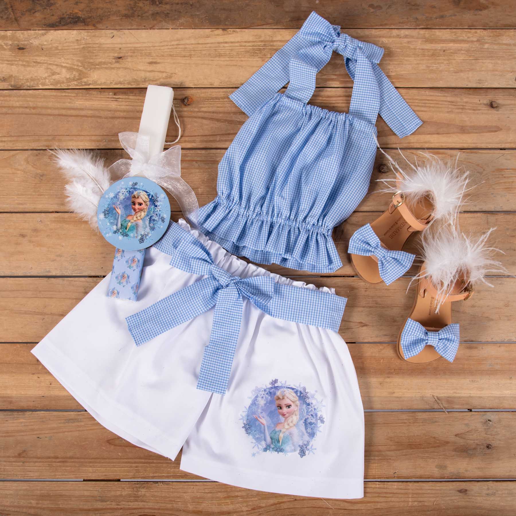 •Λευκό υφασμάτινο βαμβακερό σορτσάκι με στάμπα Ελσα-Frozen