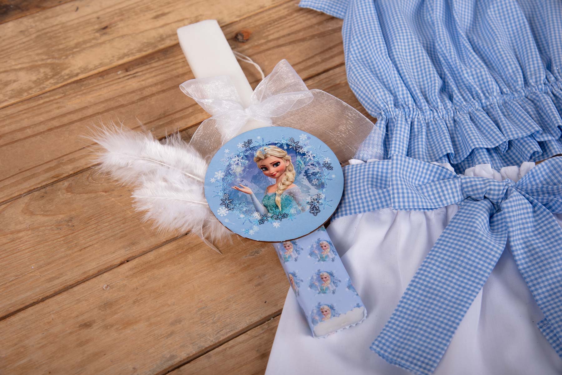 •Πασχαλινή λαμπάδα ροζ διακοσμημένη με ξύλινο καδράκι στρόγγυλο Έλσα