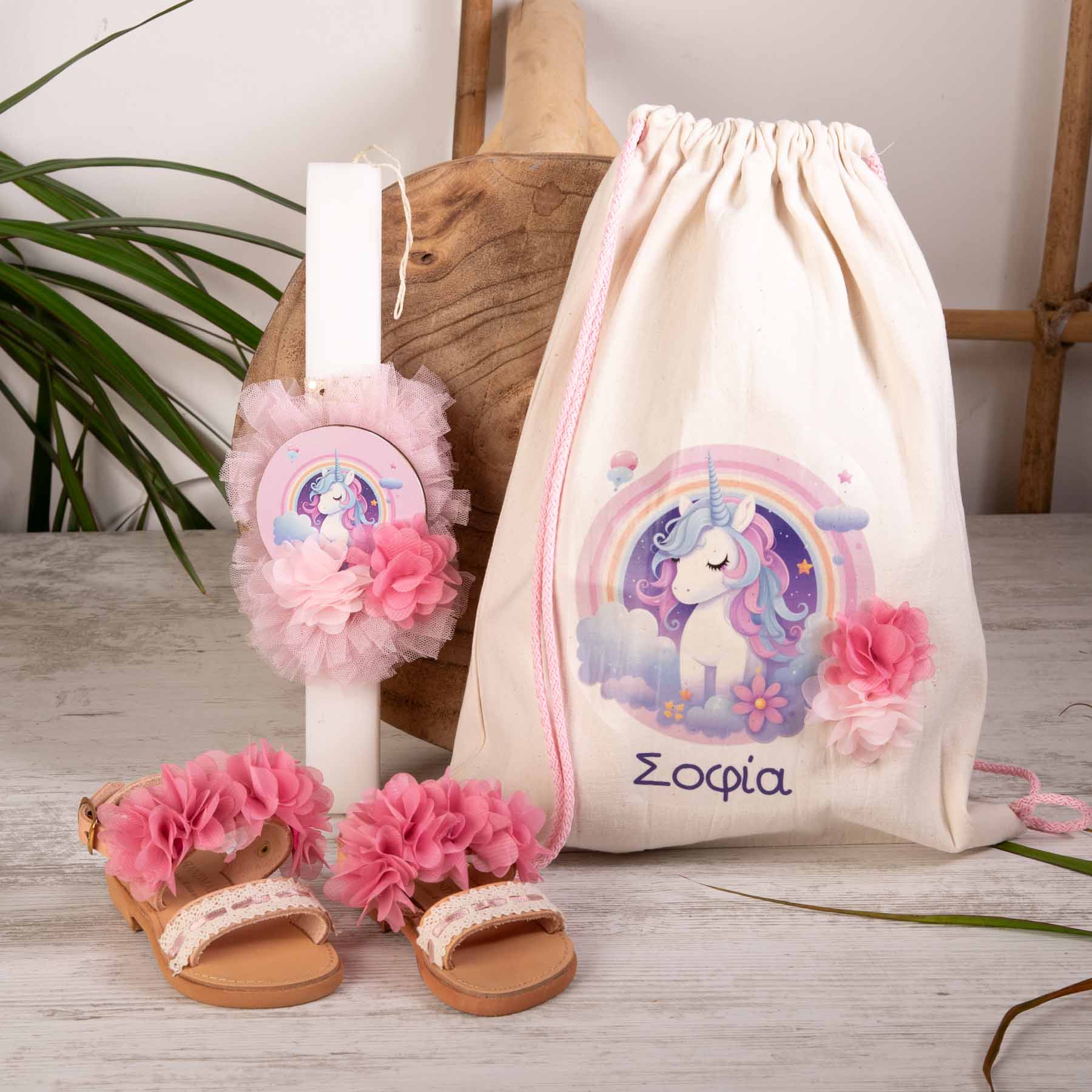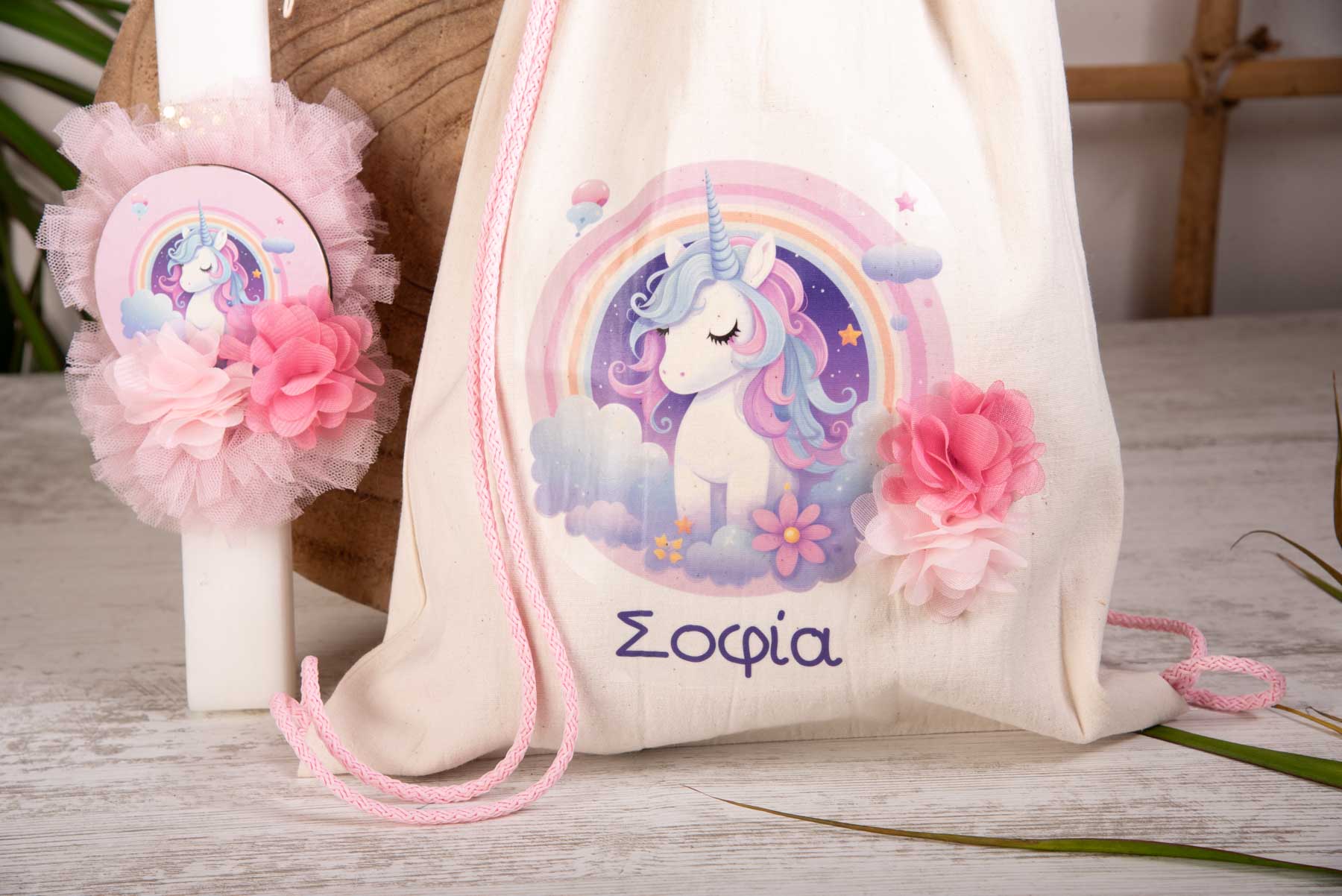 •Backpack με εκτύπωση μονόκερο και όνομα της επιλογής σας