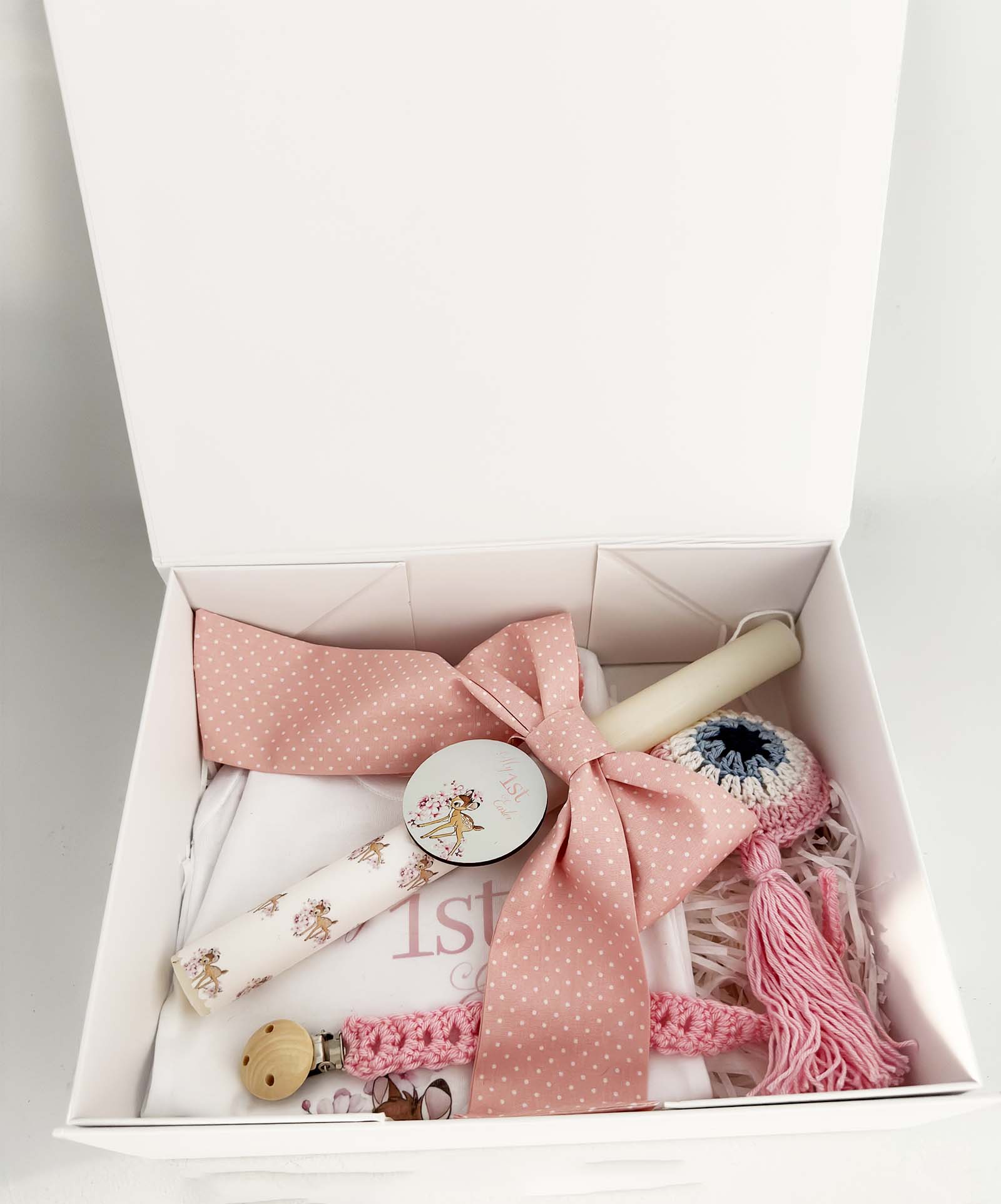 Συμπεριλαμβάνεται λευκό κουτί πολυτελείας με αυτόματο κλείσιμο και αυτοκόλλητο Baby Bambi