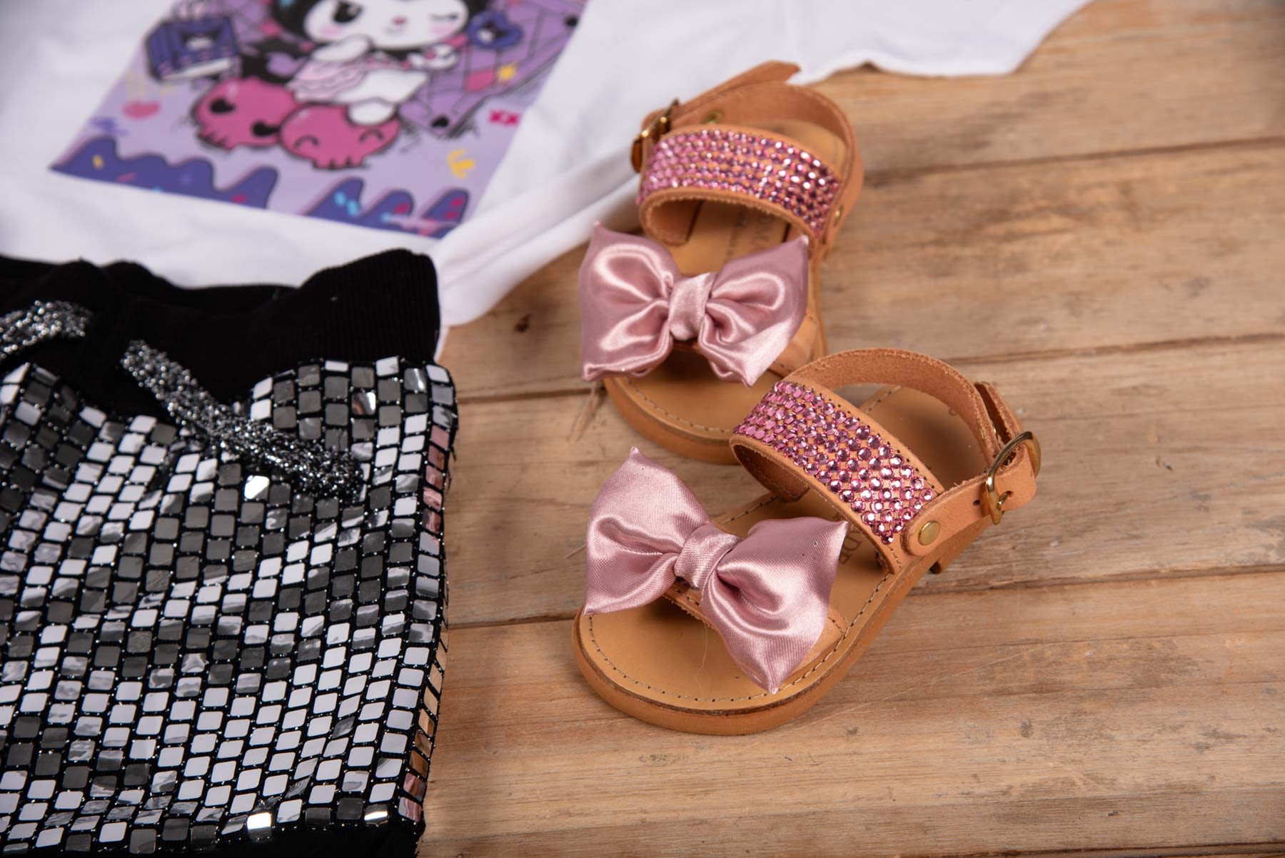 • Παιδικά πέδιλα με ροζ στρας και σατέν φιόγκο
