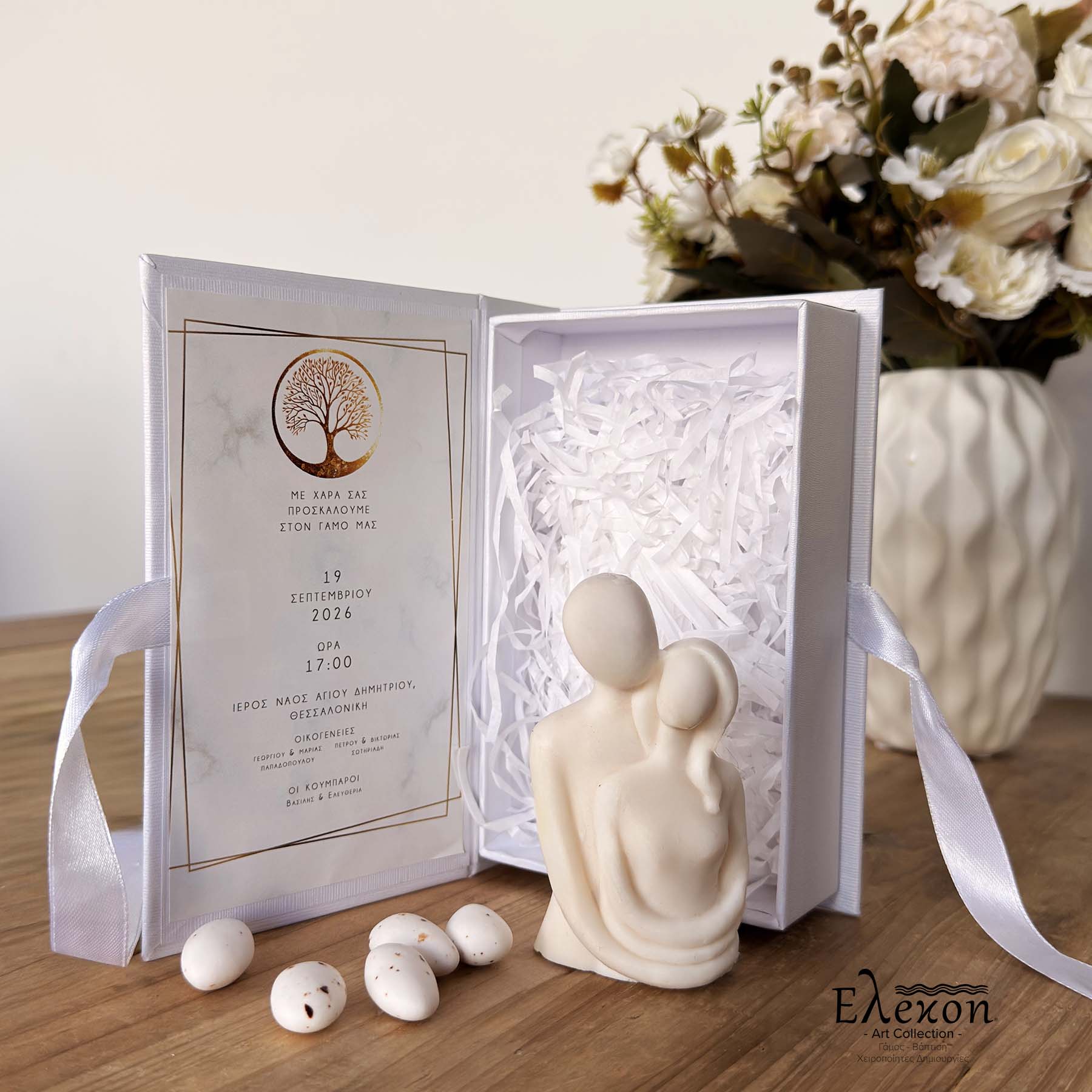 Μπομπονιέρα-προσκλητήριο σε κουτάκι θεματικό , προσκλητήριο και αρωματικό σαπούνι σε μορφή ζευγαριού