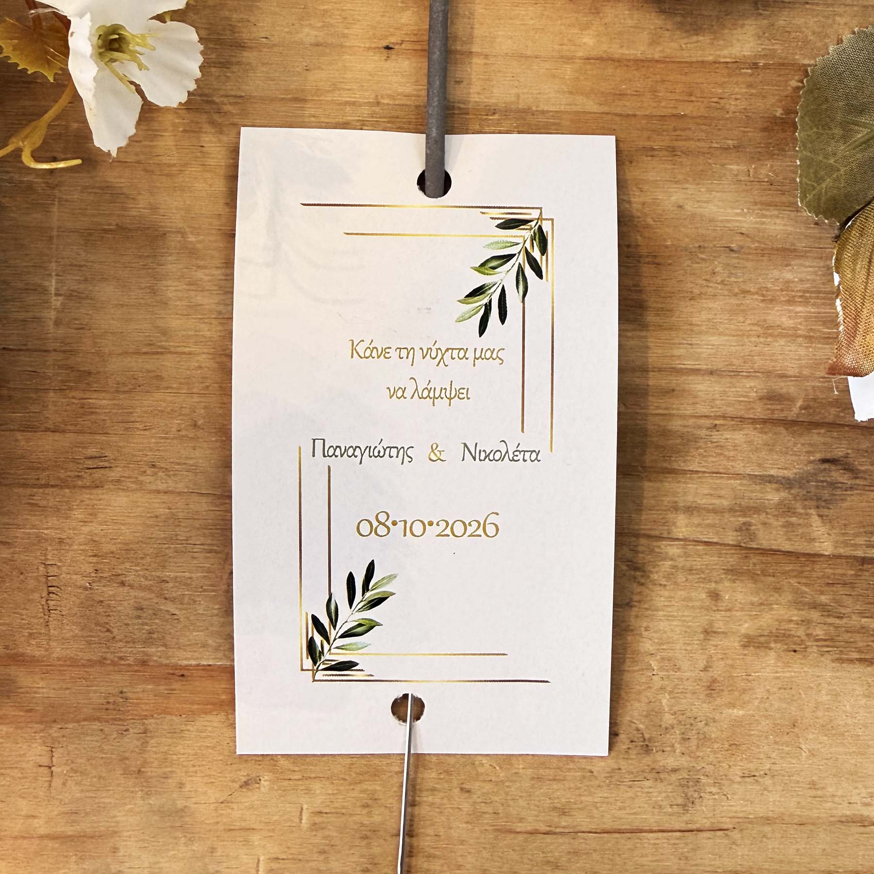 Καρτελάκι Sparklers Γάμου για την δεξίωση με θέμα την ελιά