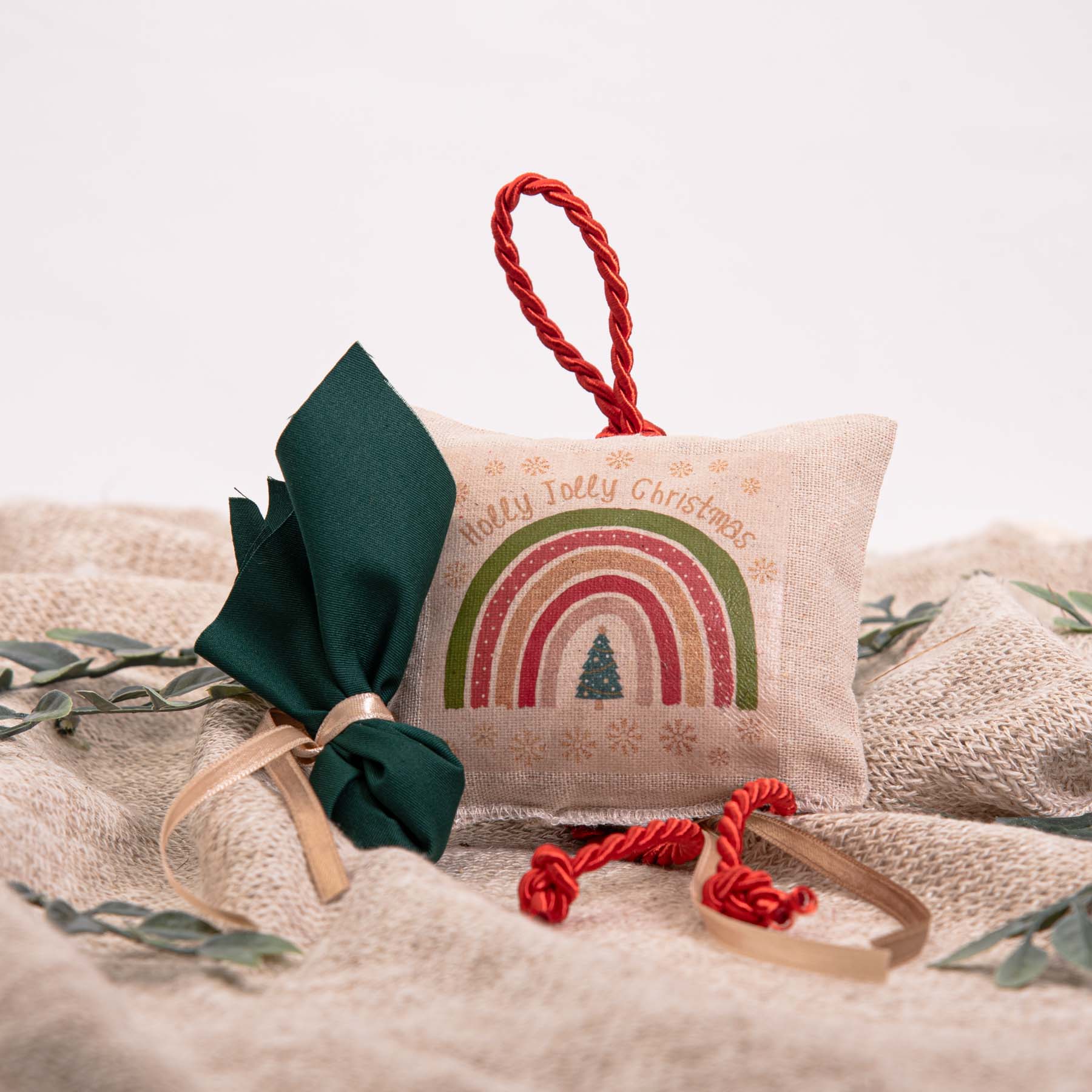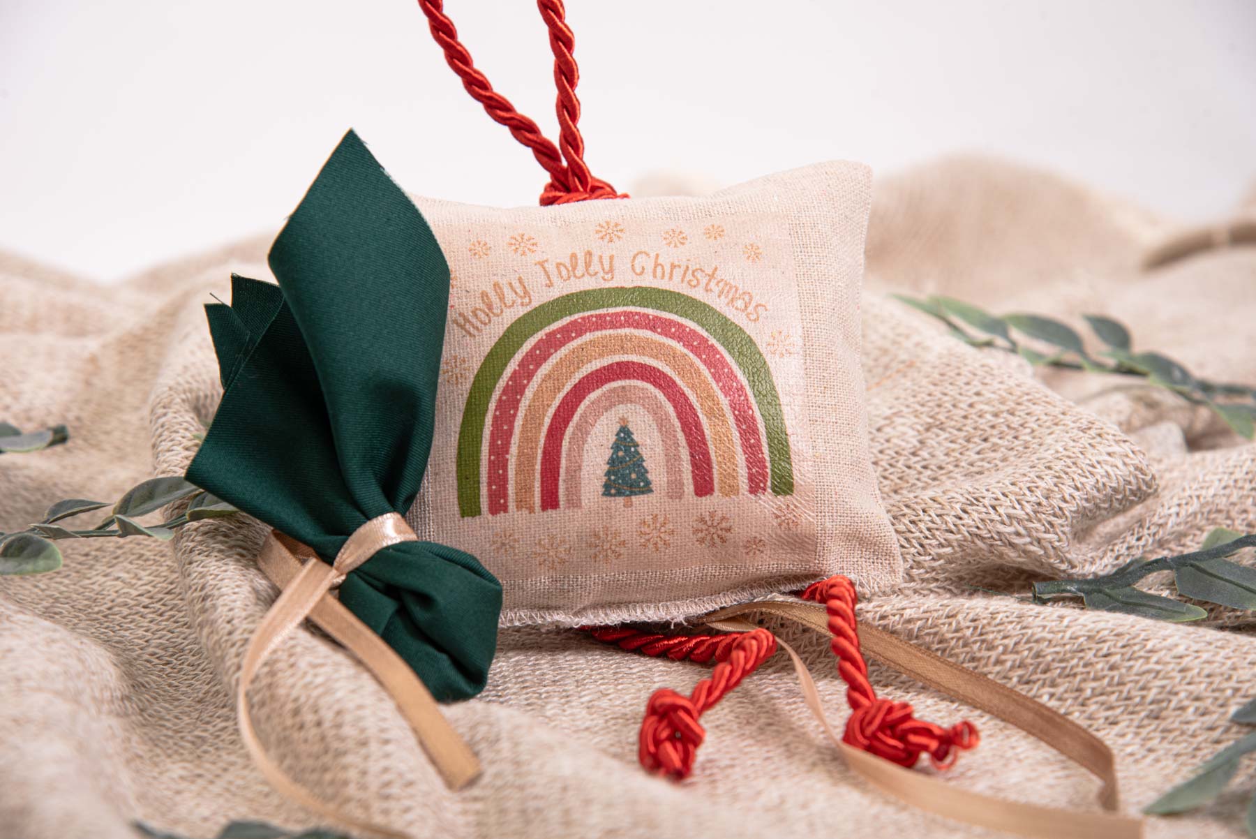 Μπομπονιέρα Βάπτισης κρεμαστό μαξιλαράκι με σιδερότυπο “Christmas Rainbow!”