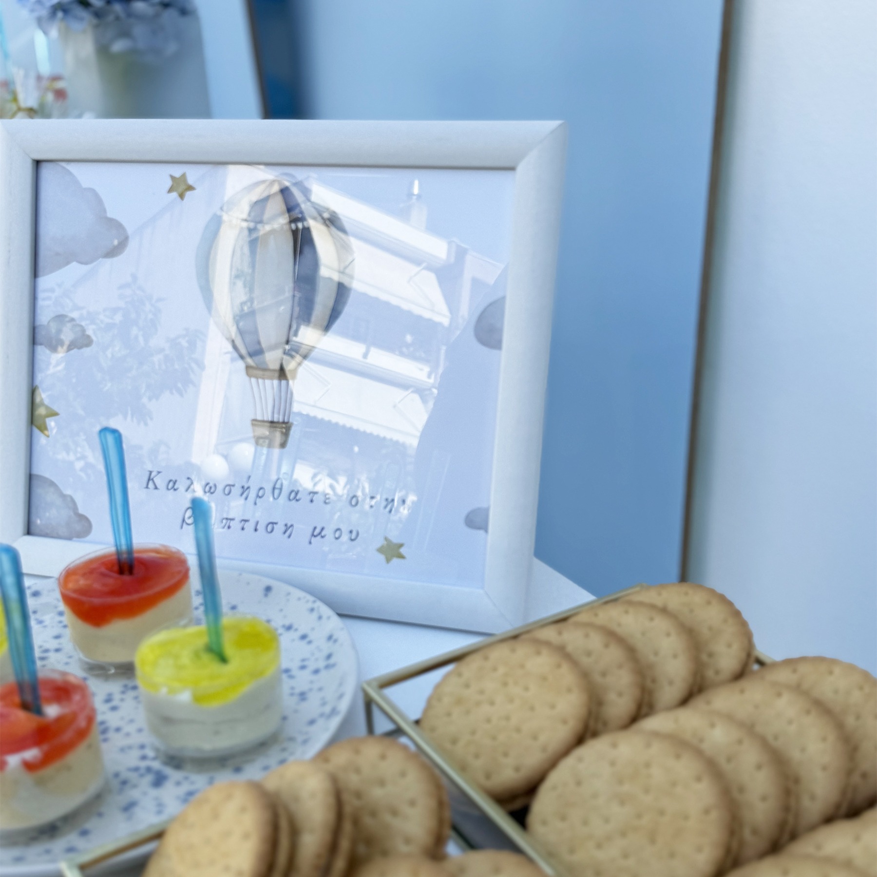 Tραπέζι στολισμού , τραπέζι ή σταντ ευχολογίου , κουλουράκια  , marshmallow , 20 σακουλάκια pop corn , εκτυπώσεις στο θέμα της Βάπτισης ,