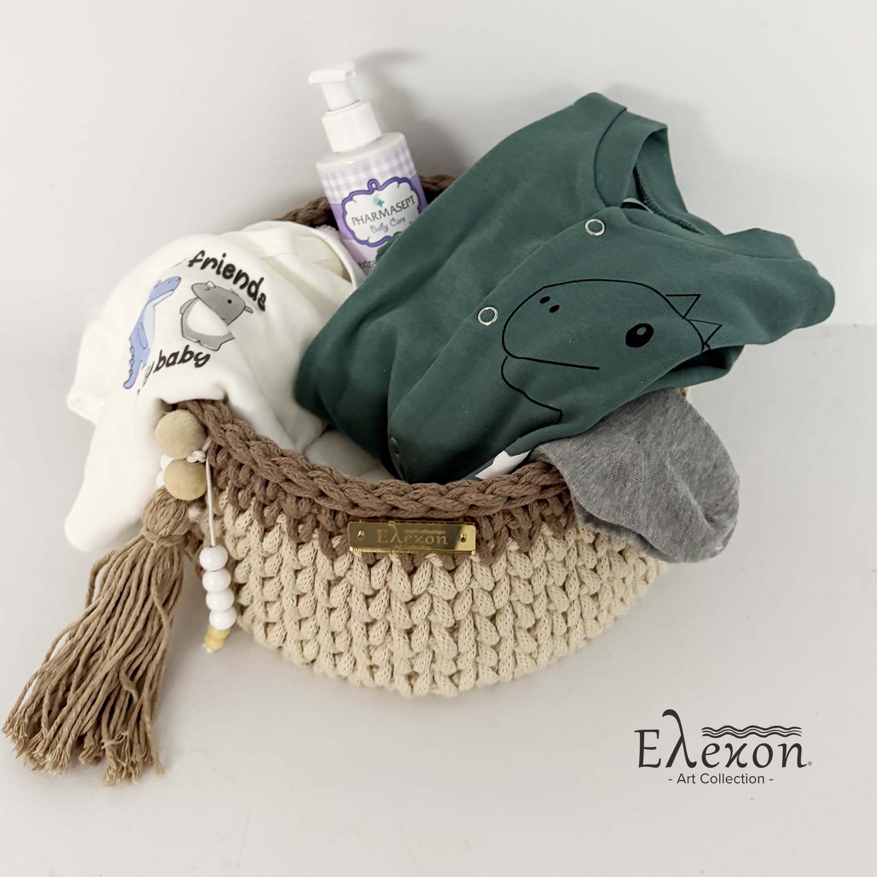 •Χειροποίητη πλεκτό καλάθι χρώματος καφέ-μπεζ