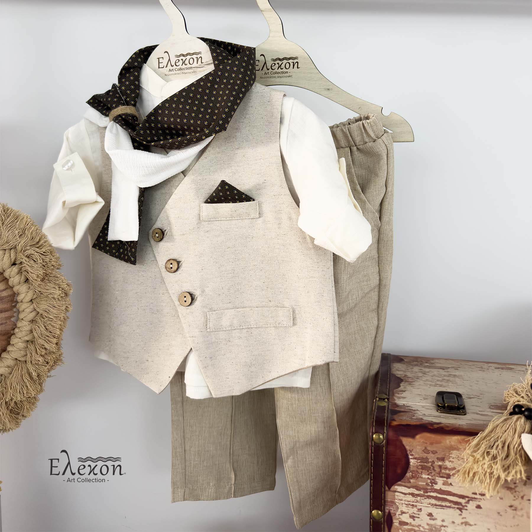 •Σετ Βαπτιστικό ρούχο για αγόρι Elekon art collection με καπέλο καβουράκι εκρού