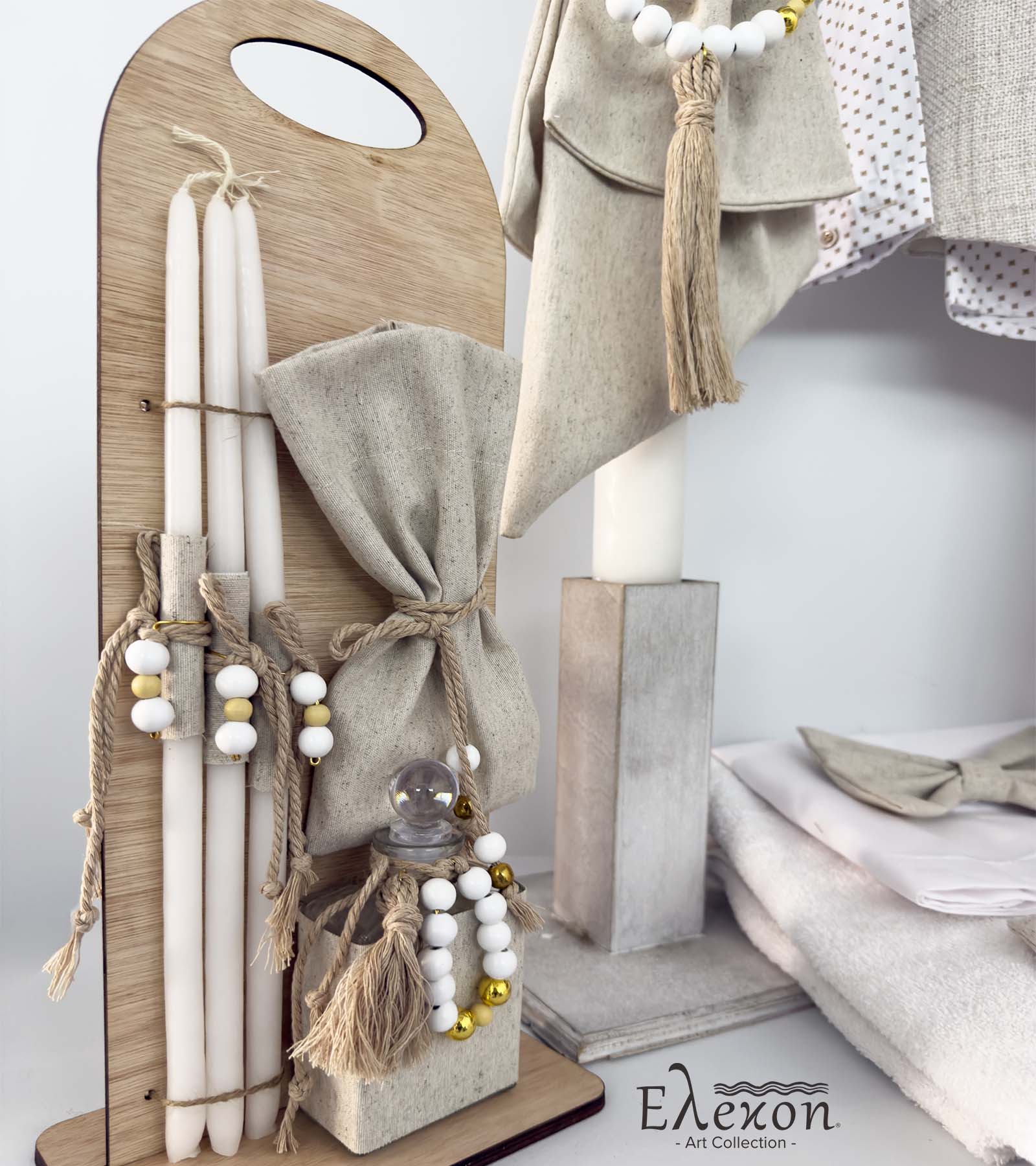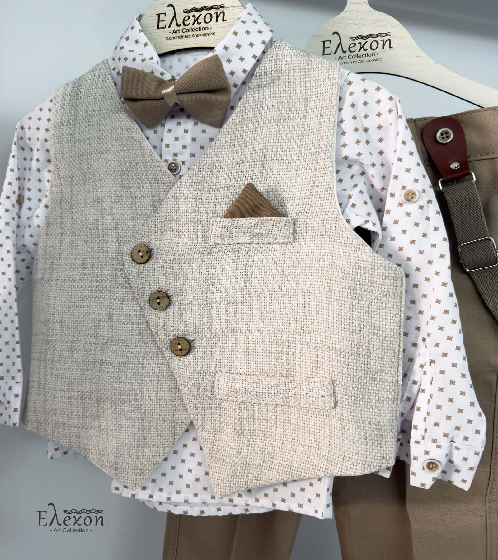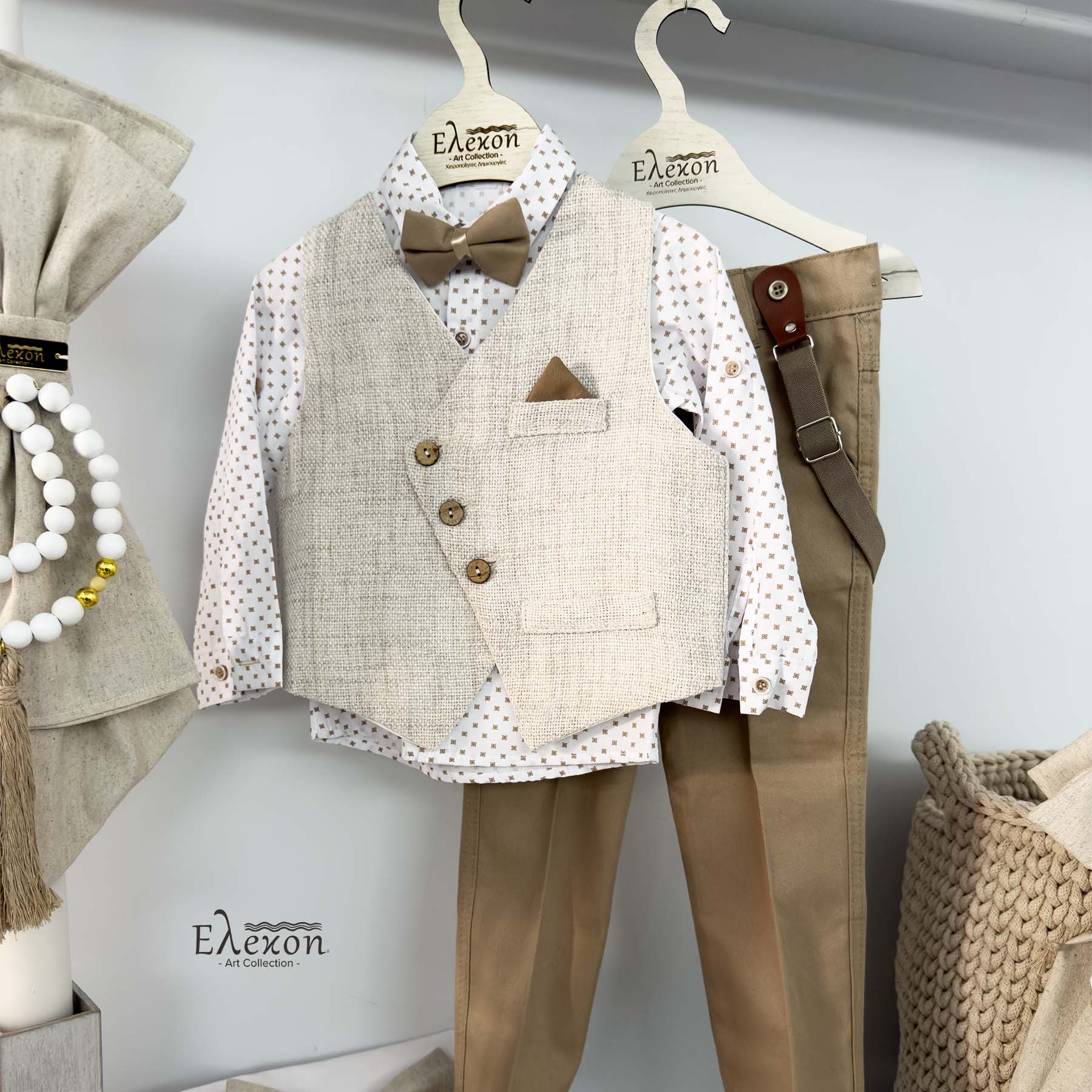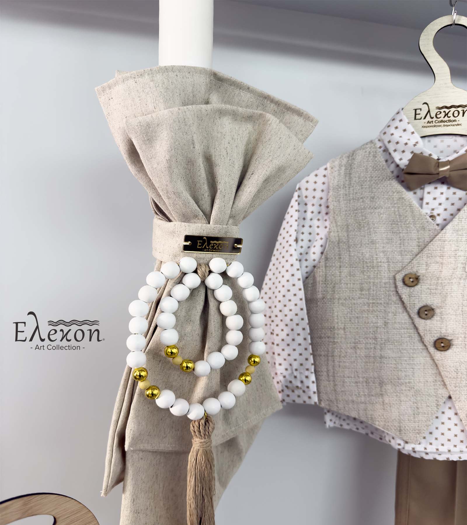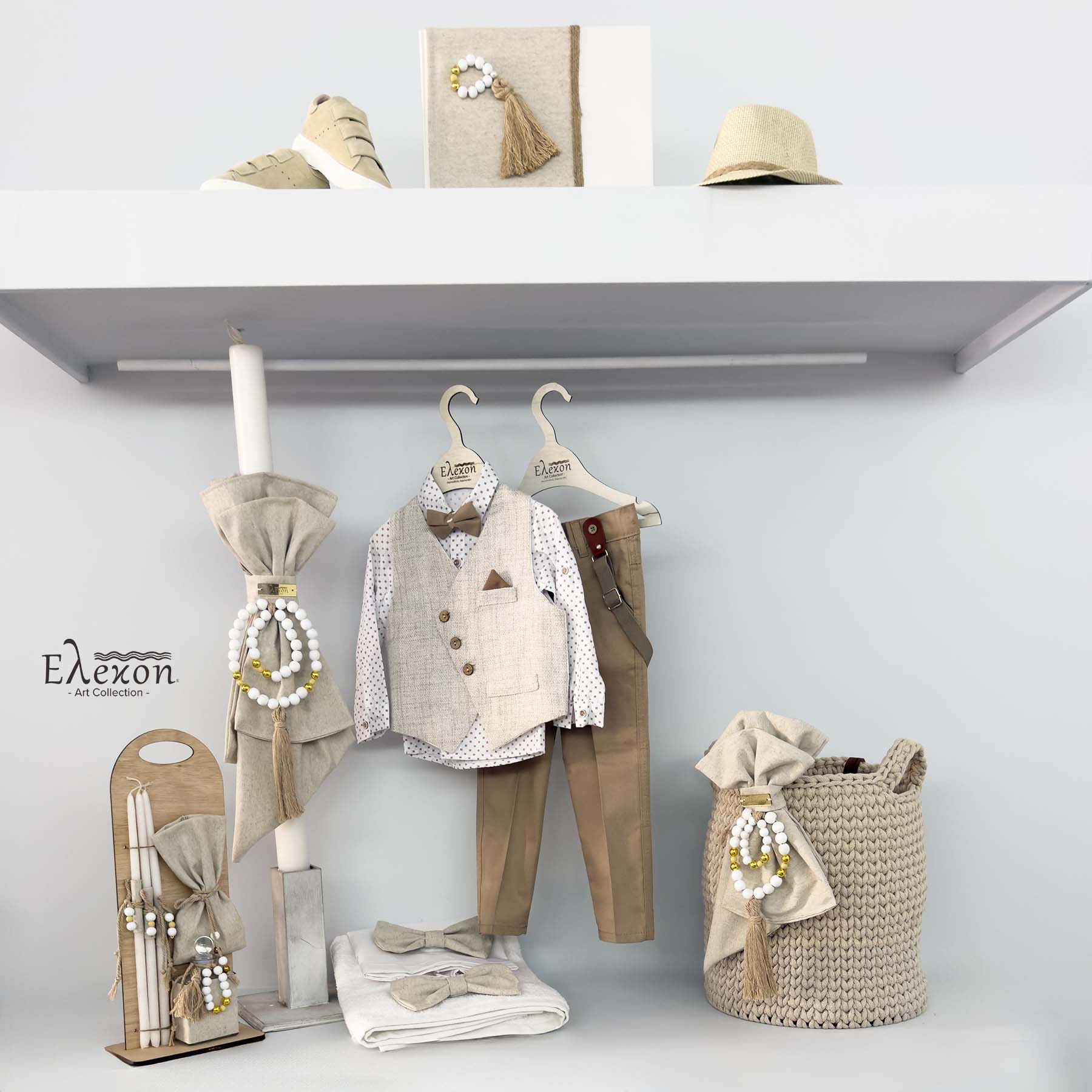 Το ολοκληρωμένο πακέτο βάπτισης για αγόρι “Elegant beige” περιλαμβάνει :
