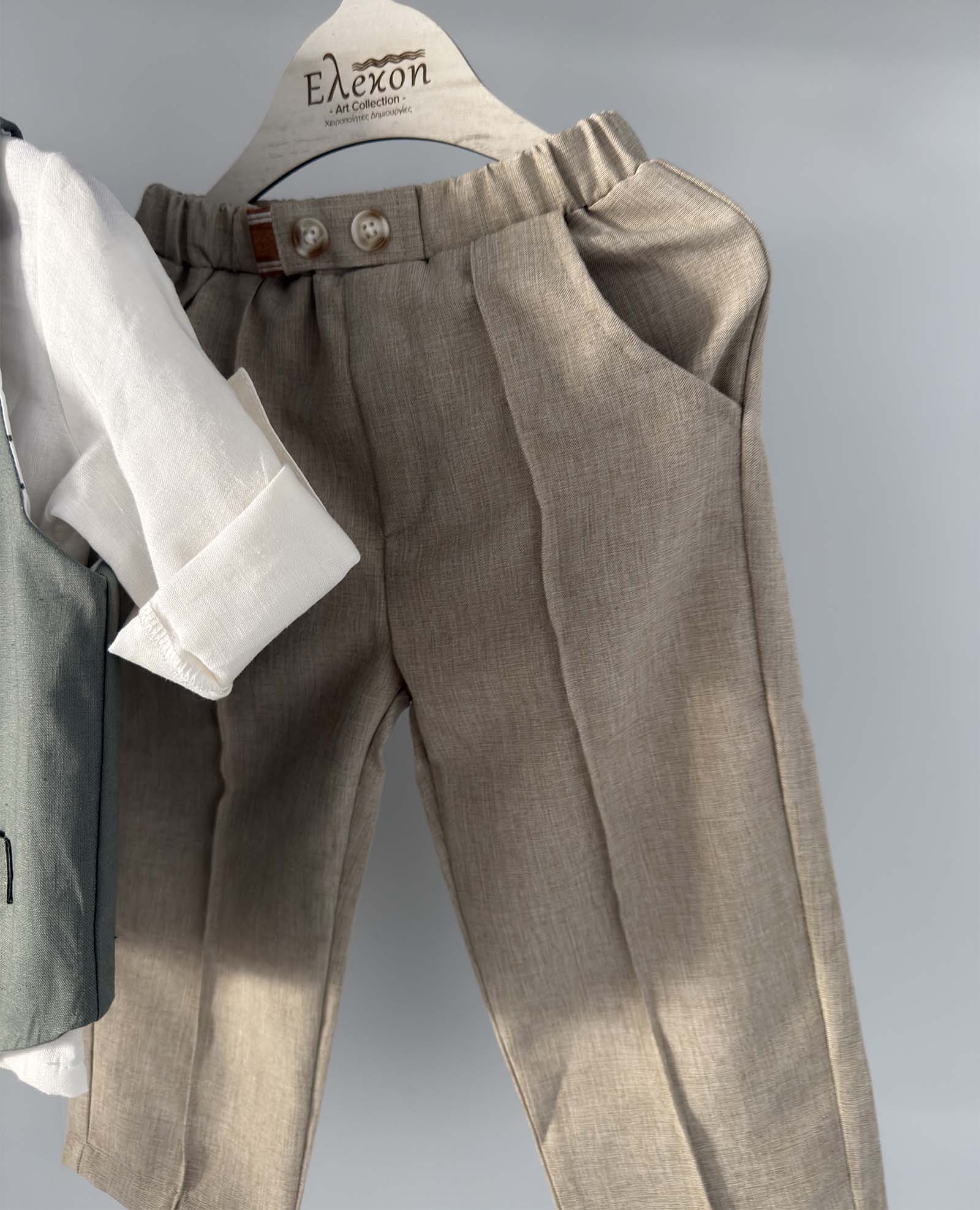 •Σετ Βαπτιστικό ρούχο για αγόρι Elekon art collection με καπέλο καβουράκι εκρού
