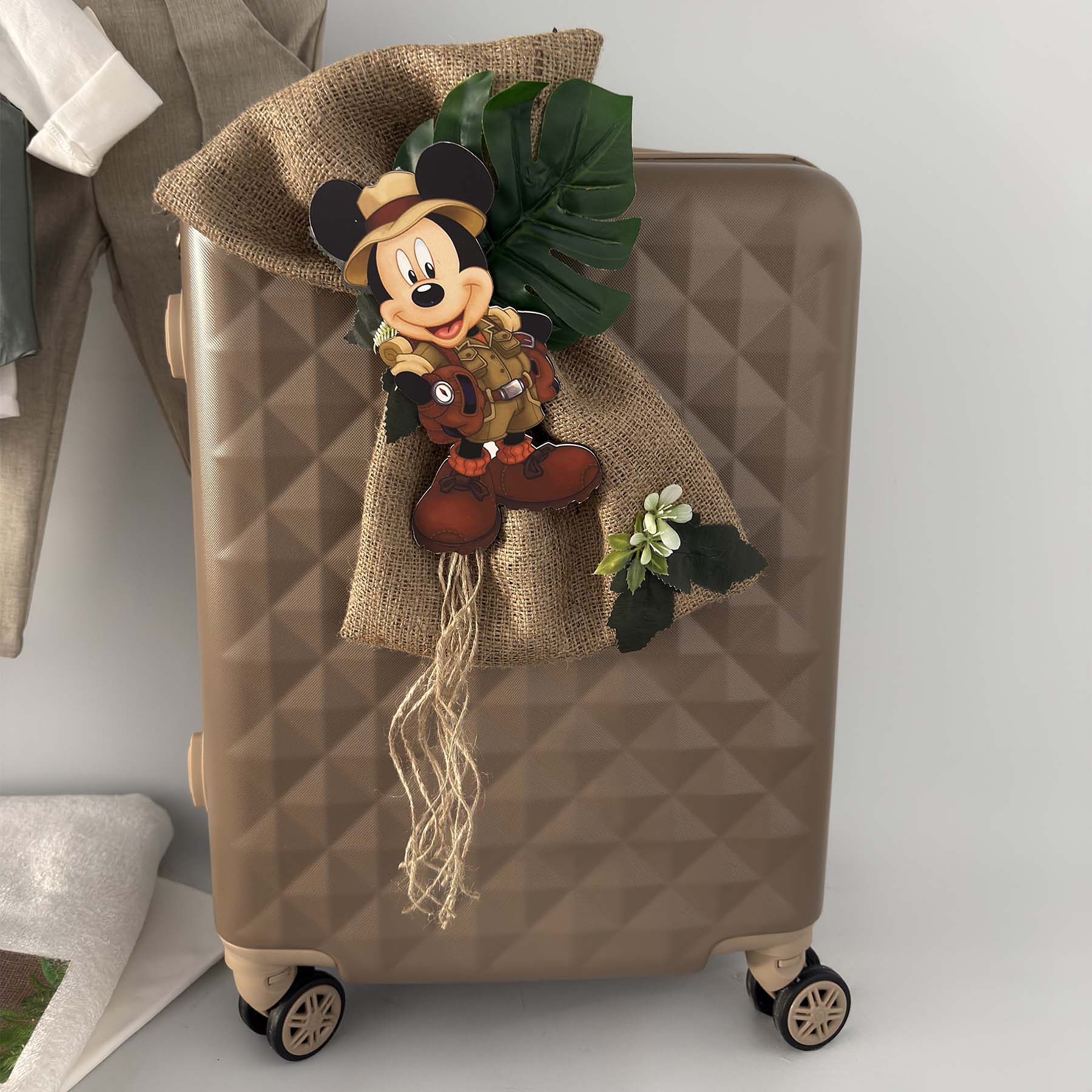 •Σοκολά βαλίτσα διακοσμημένη με ξύλινη φιγούρα Mickey Safari