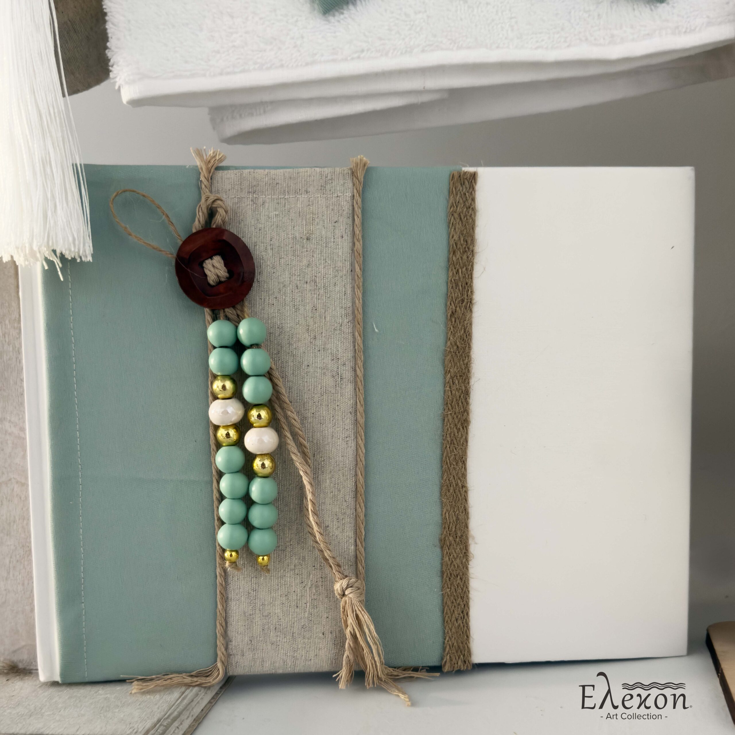 •Λαμπάδα Βάπτισης διακοσμημένη με χάντρες και υφάσματα εκρού και μέντα