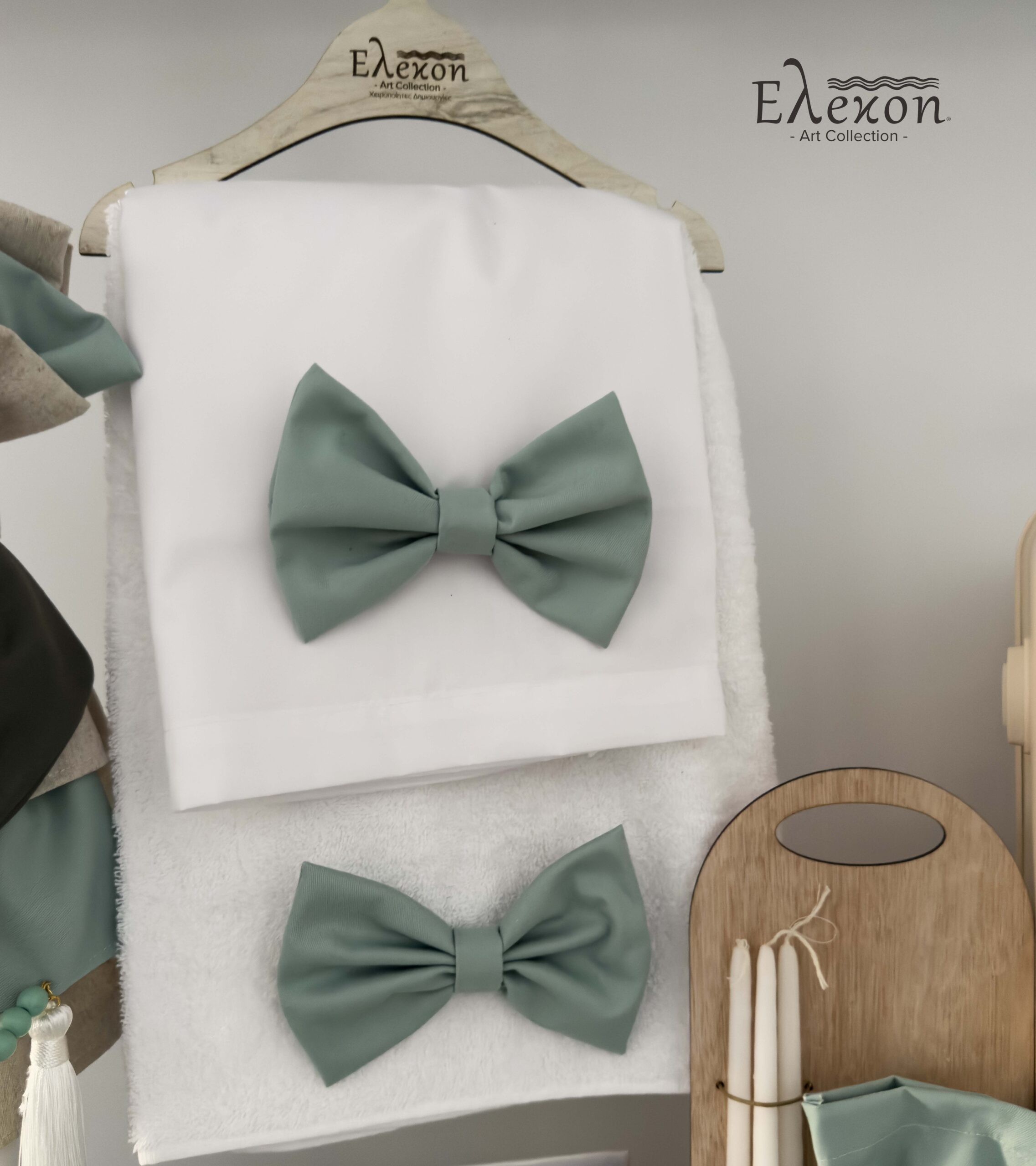 •Σετ λαδόπανο με μεγάλο φιόγκο σε χρώμα μέντα (Λαδόπανο, πετσέτα , εσώρουχα)