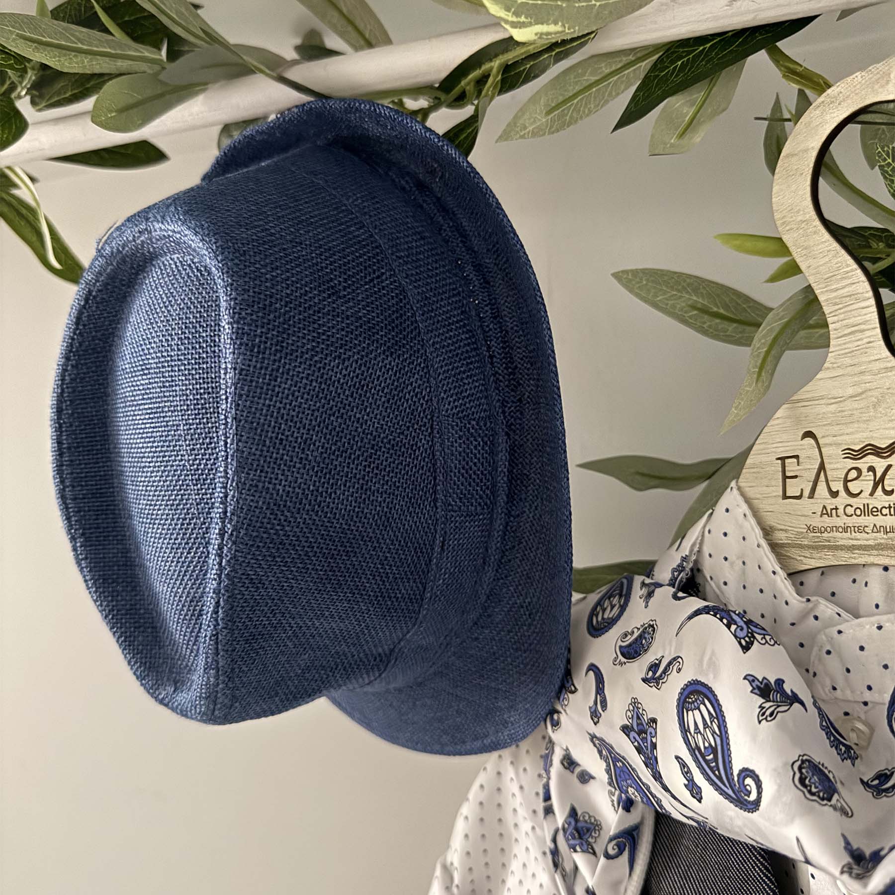 •Μπλε καπέλο τύπου καβουράκι υφασμάτινο