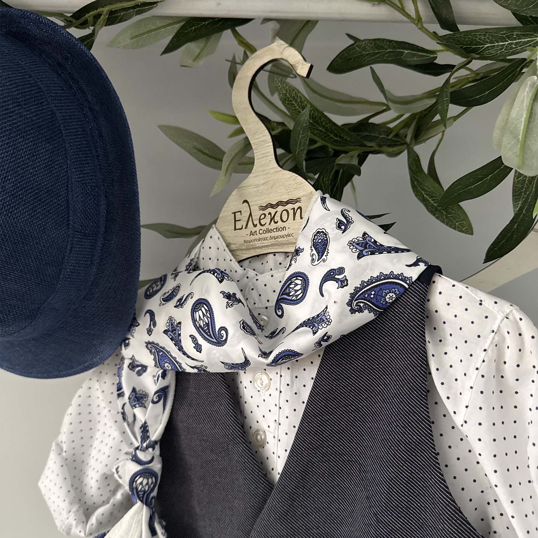•Φουλάρι λευκό με μπλε σχέδια