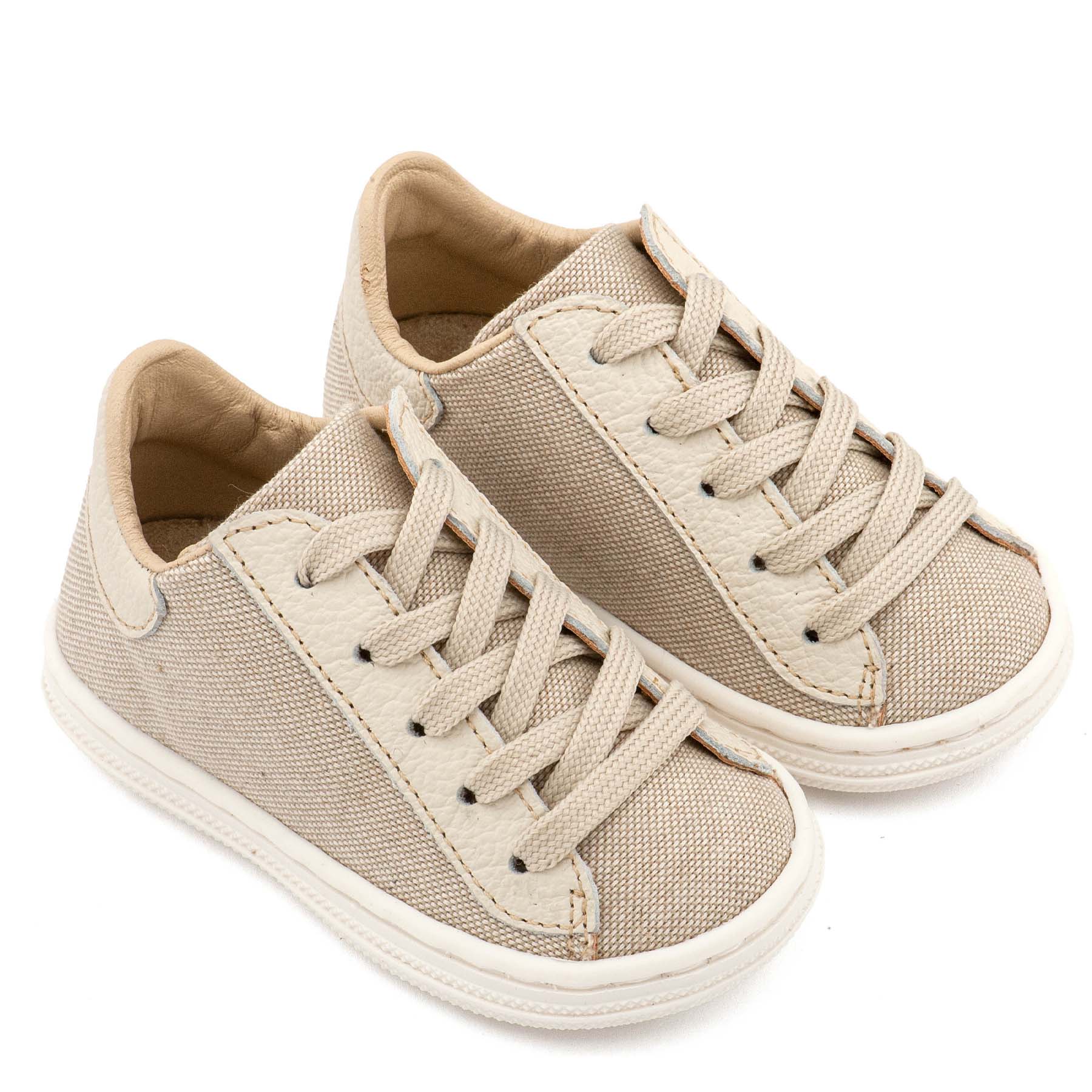 Δετά Ημίμποτα απο Ύφασμα και Δέρμα σε Μπεζ Χρώμα