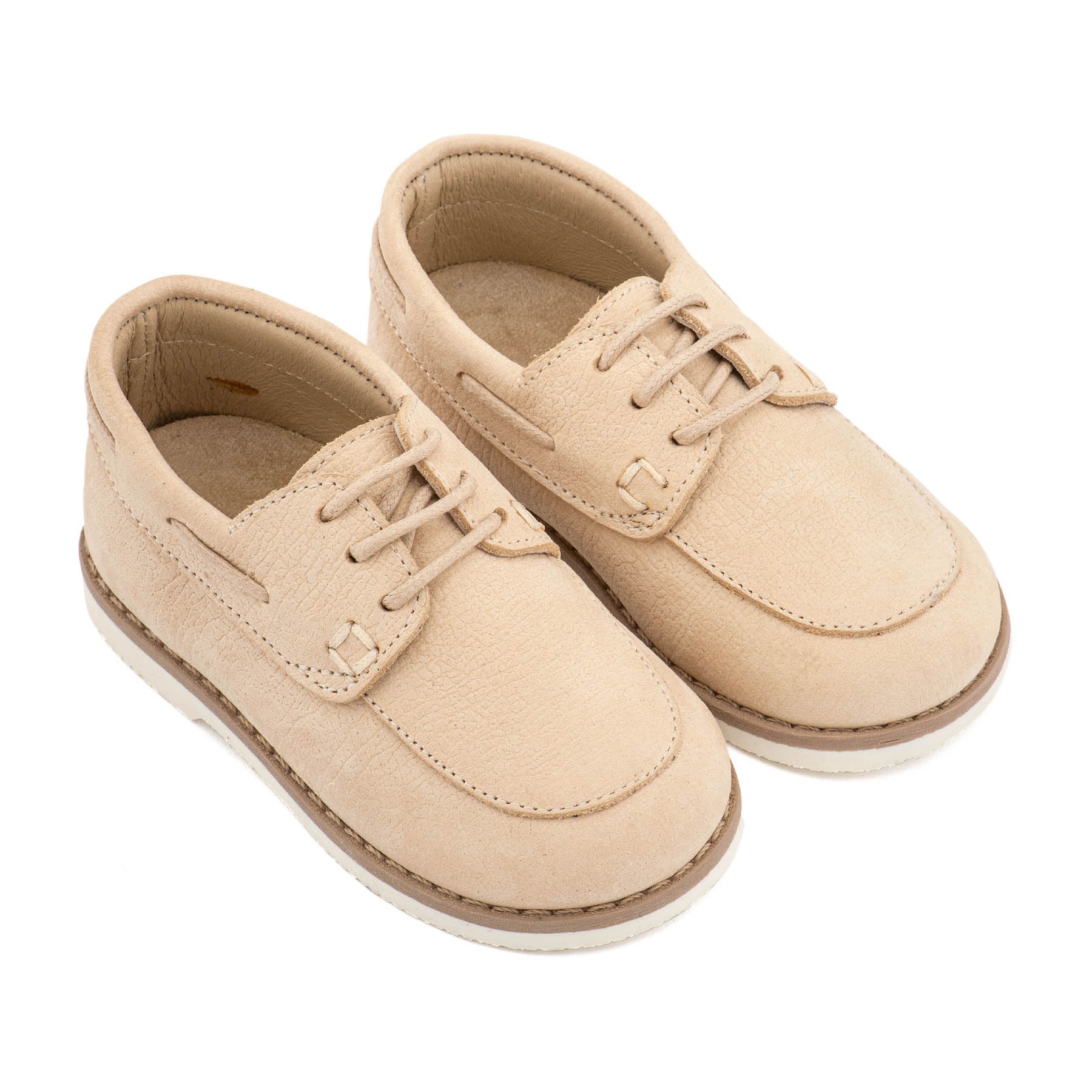 Δετό Δερμάτινο Μοκασίνι από Δέρμα Ναμπούκ με Κορδόνι σε Μπεζ Χρώμα