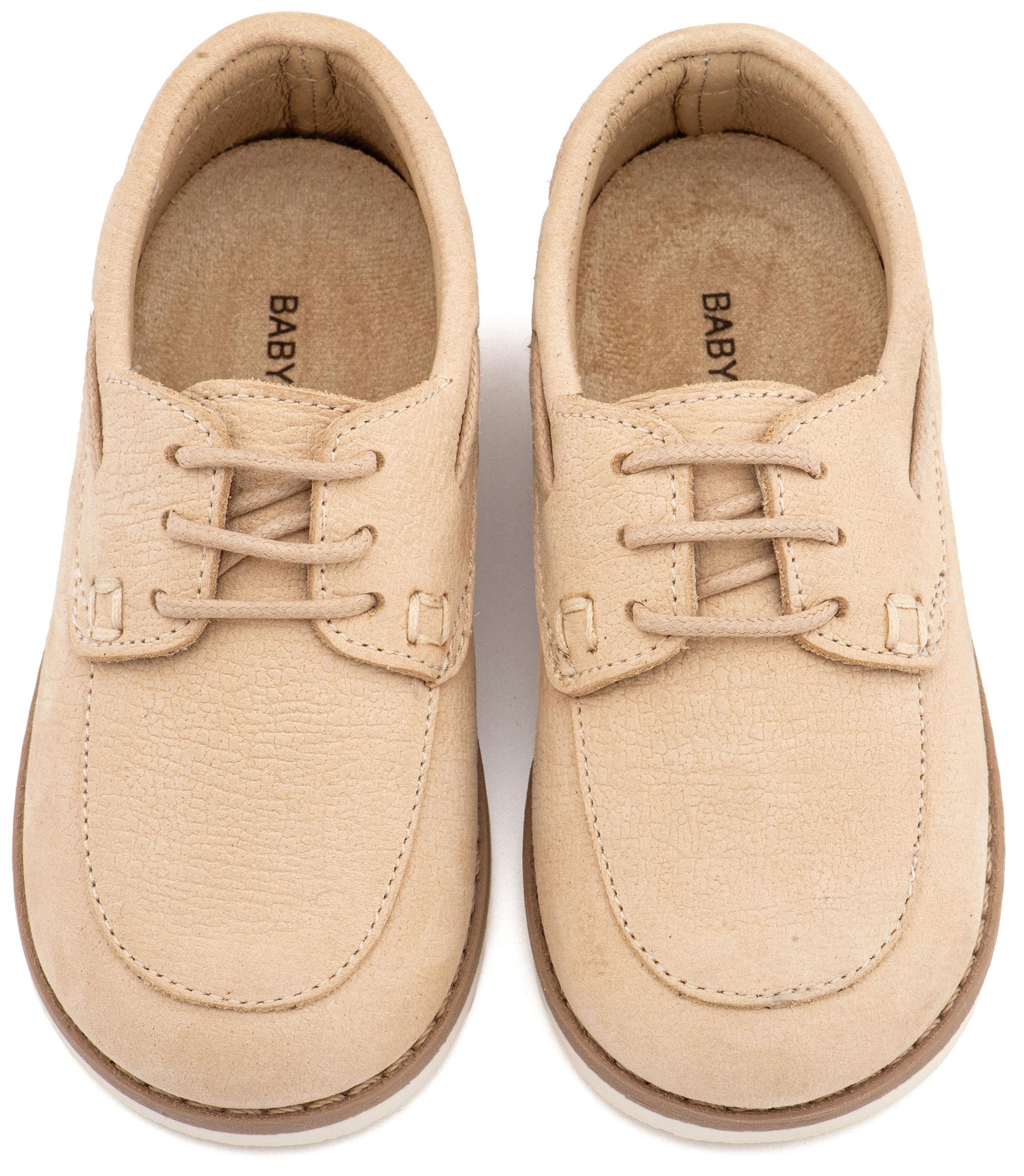 -    -  Παπούτσια για περπάτημα αγόρι  -  Δετό Δερμάτινο Μοκασίνι BW 4308 Μπεζ