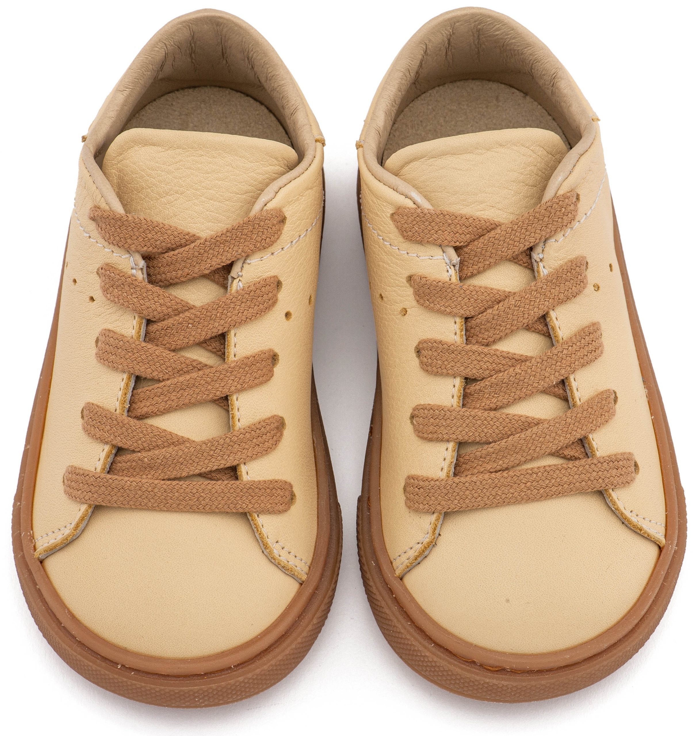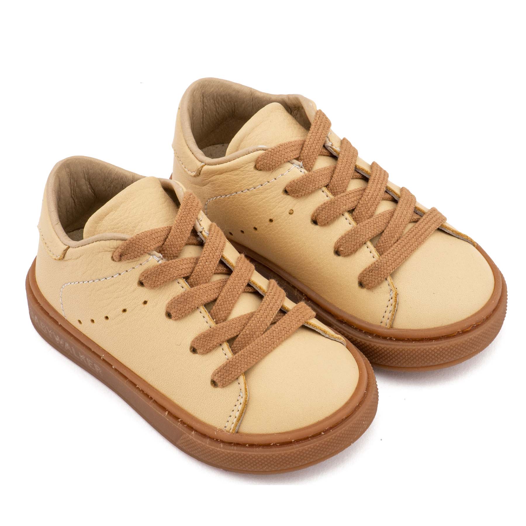 Δετό Δερμάτινο Sneaker από Δέρμα Νάπα σε Μπεζ Χρώμα με Κορδόνι καλαμποκί