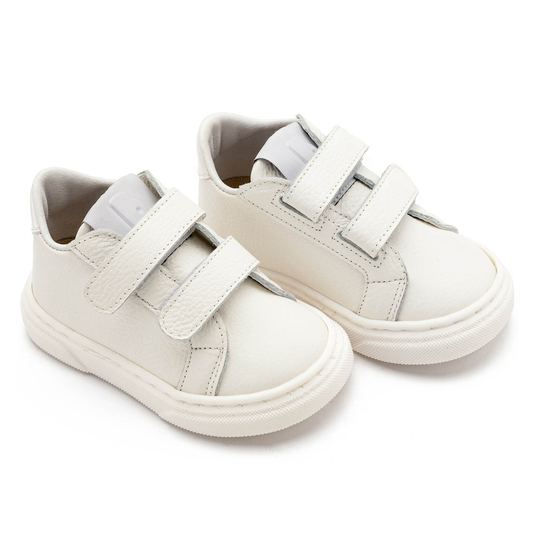 Μονόχρωμο Δερμάτινο Σνίκερ με Διπλή Μπαρέτα Χρατς σε Λευκό Χρώμα