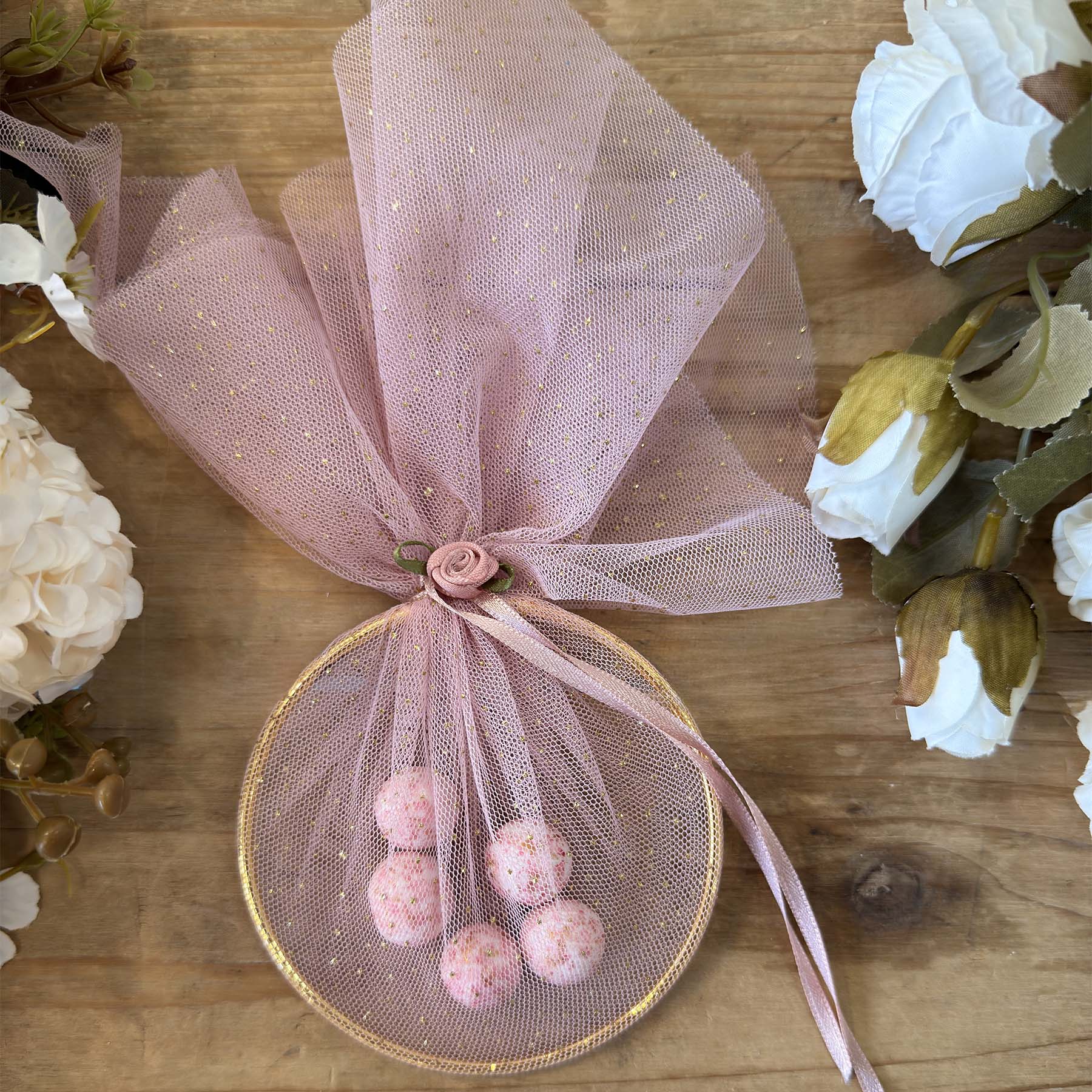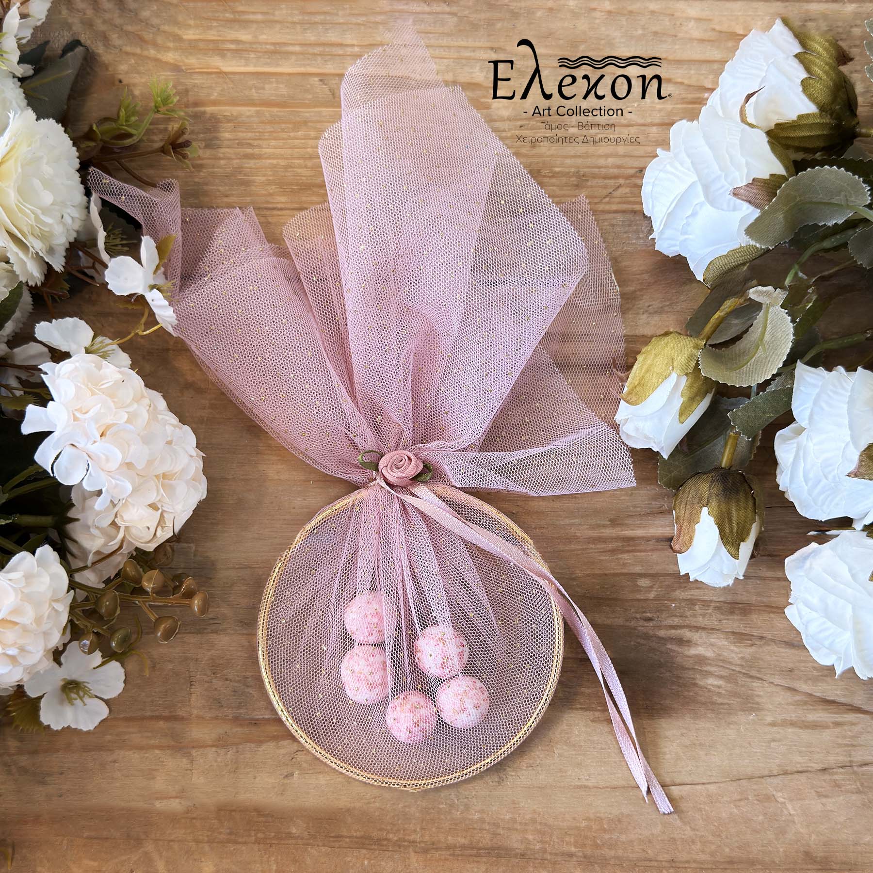 -    -  Χειροποίητες δημιουργίες κορίτσι  -  Μπομπονιέρα χρυσός κύκλος | Dusty pink