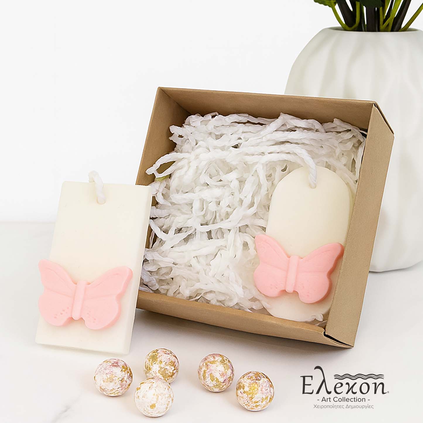 Μπομπονιέρα βάπτισης χειροποίητο σαπούνι με 3D πεταλούδα χρώματος ροζ σε 2 σχήματα (ορθογώνιο , οβάλ)