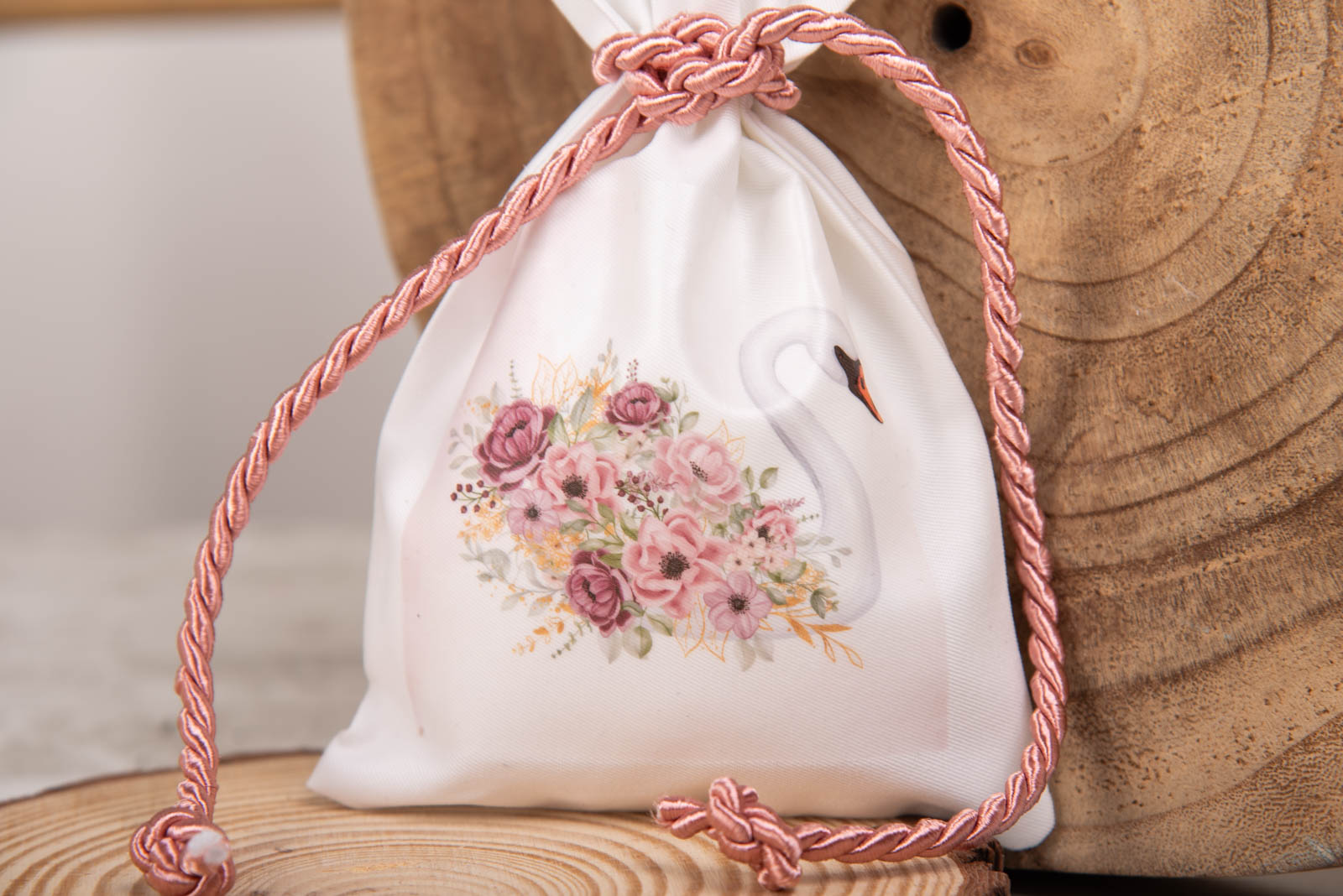 -    -  Χειροποίητες δημιουργίες κορίτσι  -  Μπομπονιέρα Βάπτισης πουγκί | Κύκνος
