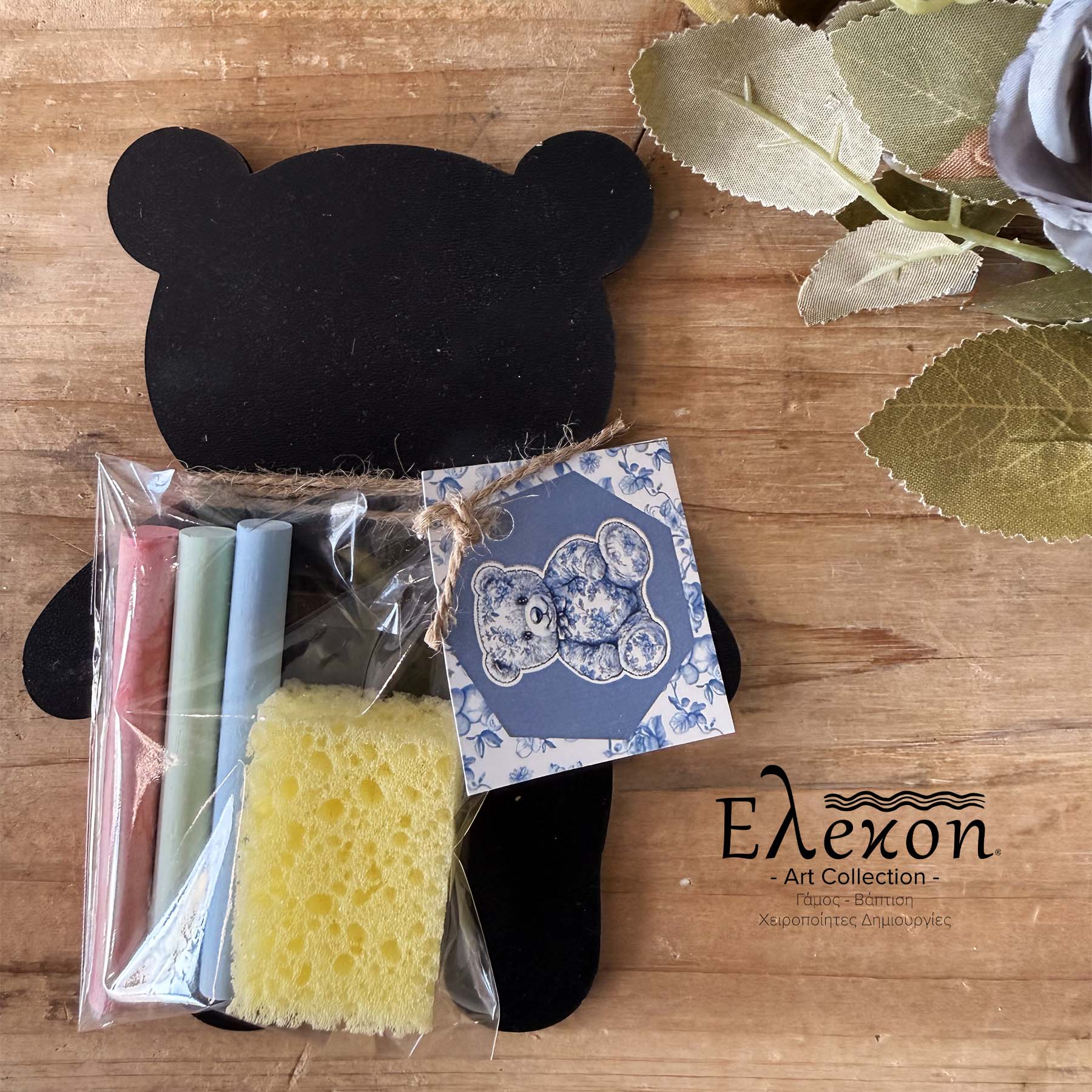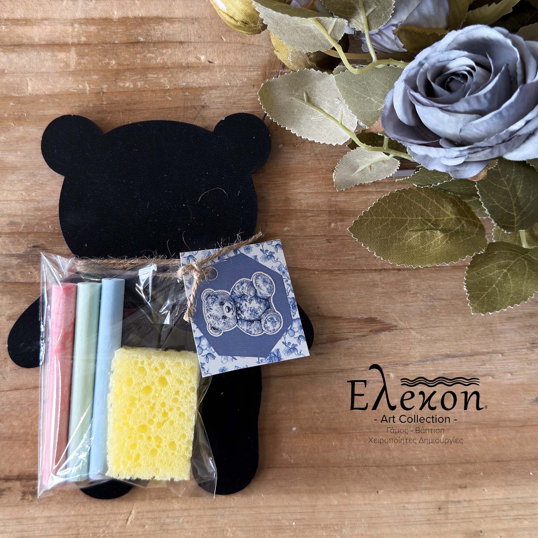 Παιδική μπομπονιέρα βάπτισης αρκουδάκι μαυροπίνακας με κιμωλίες και 7 κουφέτα piccolino Χατζηγιαννάκη