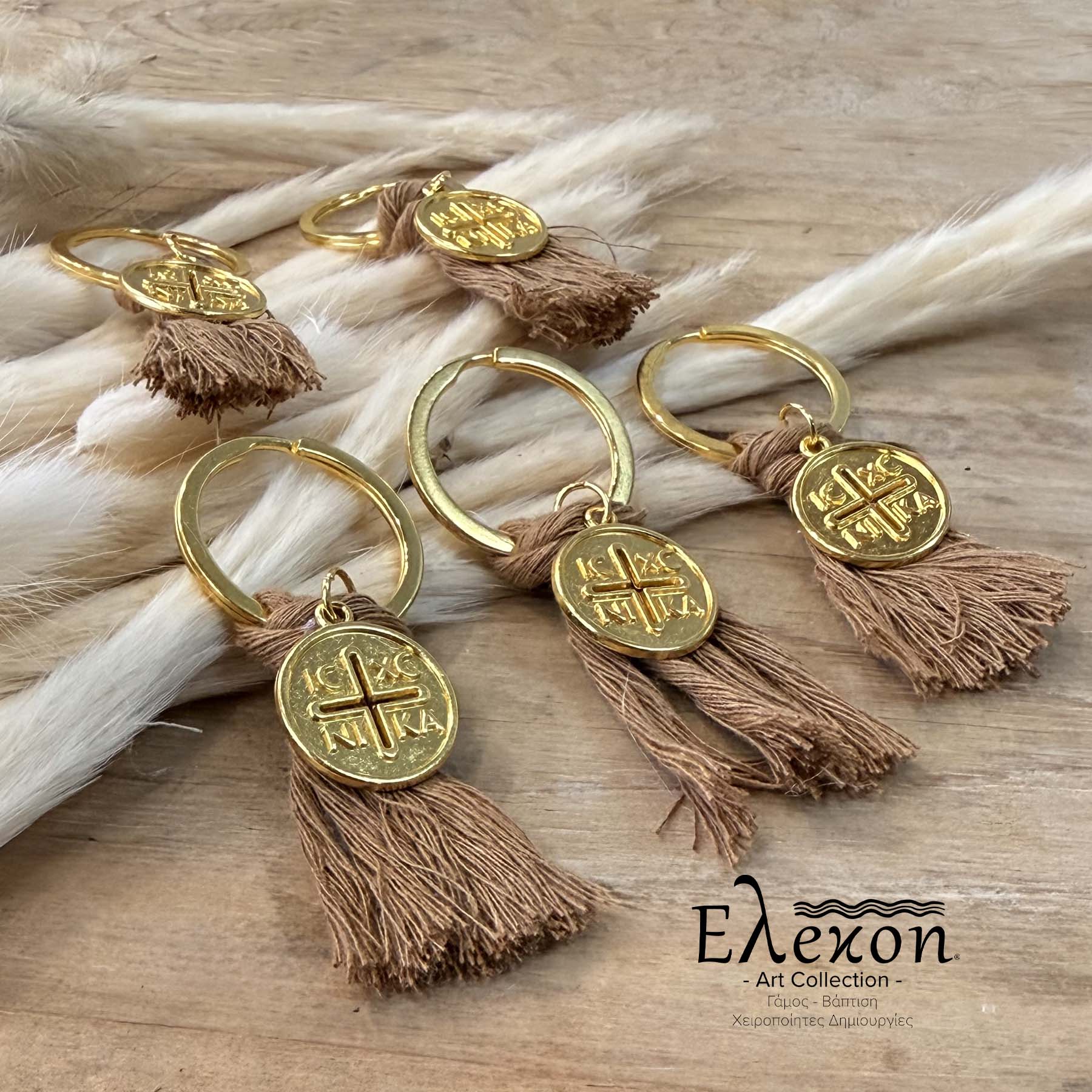 Μαρτυρικά Βάπτισης μπρελόκ καφέ με Κωνσταντινάτο