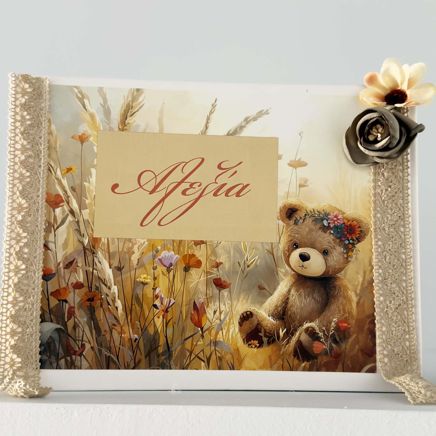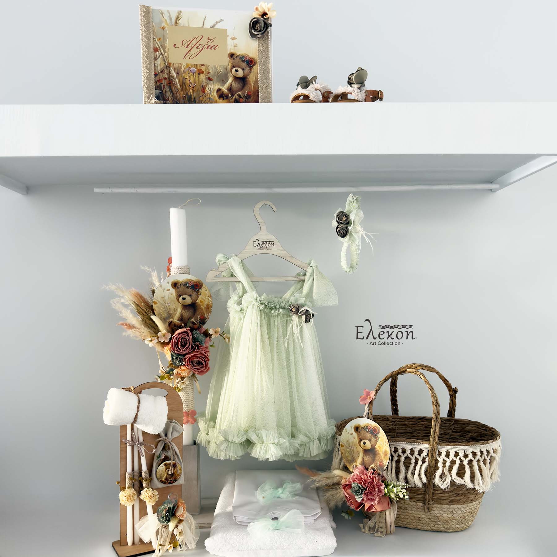 Το ολοκληρωμένο πακέτο βάπτισης για κορίτσι”Boho Teddy Bear ” περιλαμβάνει :