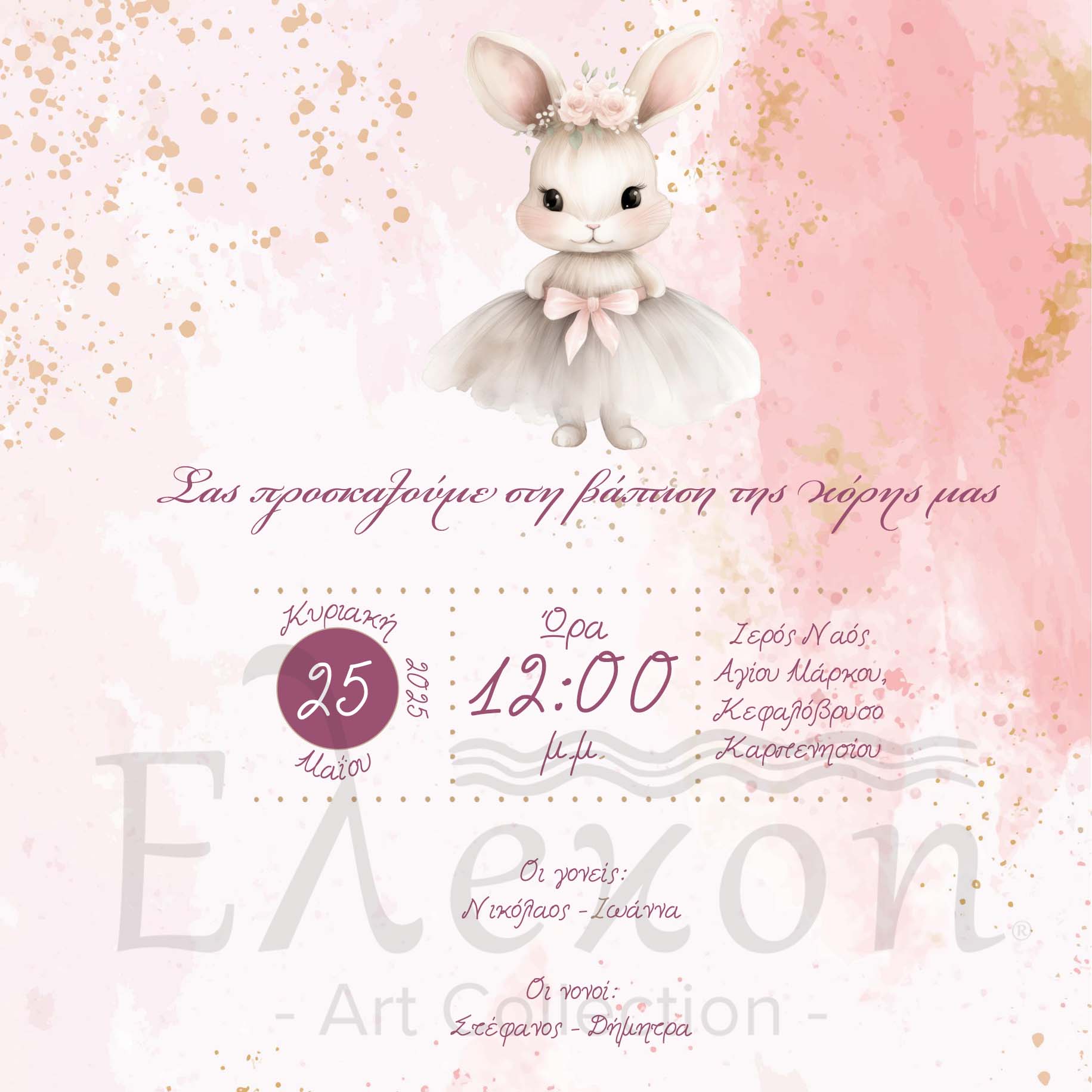 Προσκλητήριο Βάπτισης με θέμα κουνέλι (15cm X 15cm)