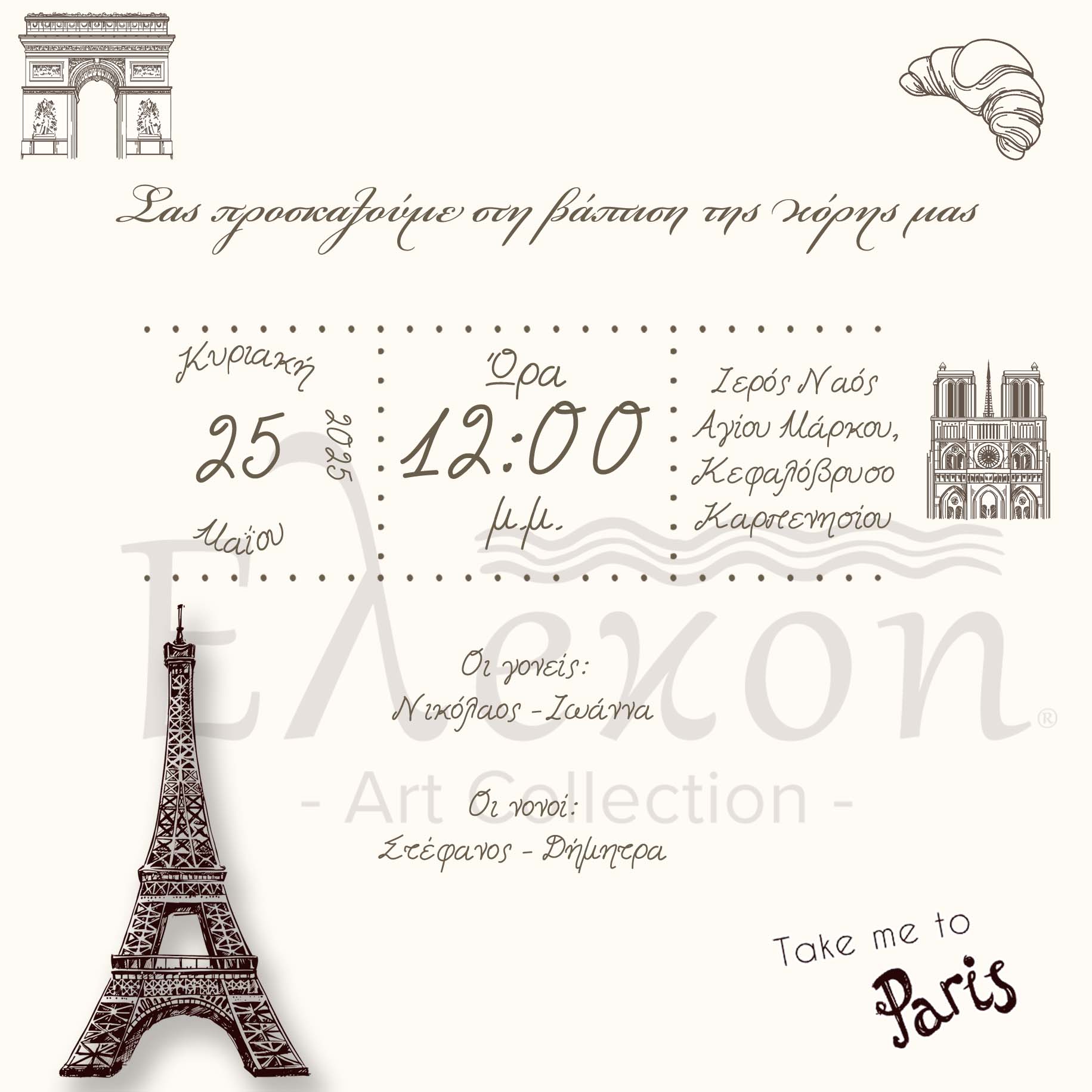 Προσκλητήριο Βάπτισης με θέμα vintage Paris (15cm X 15cm)