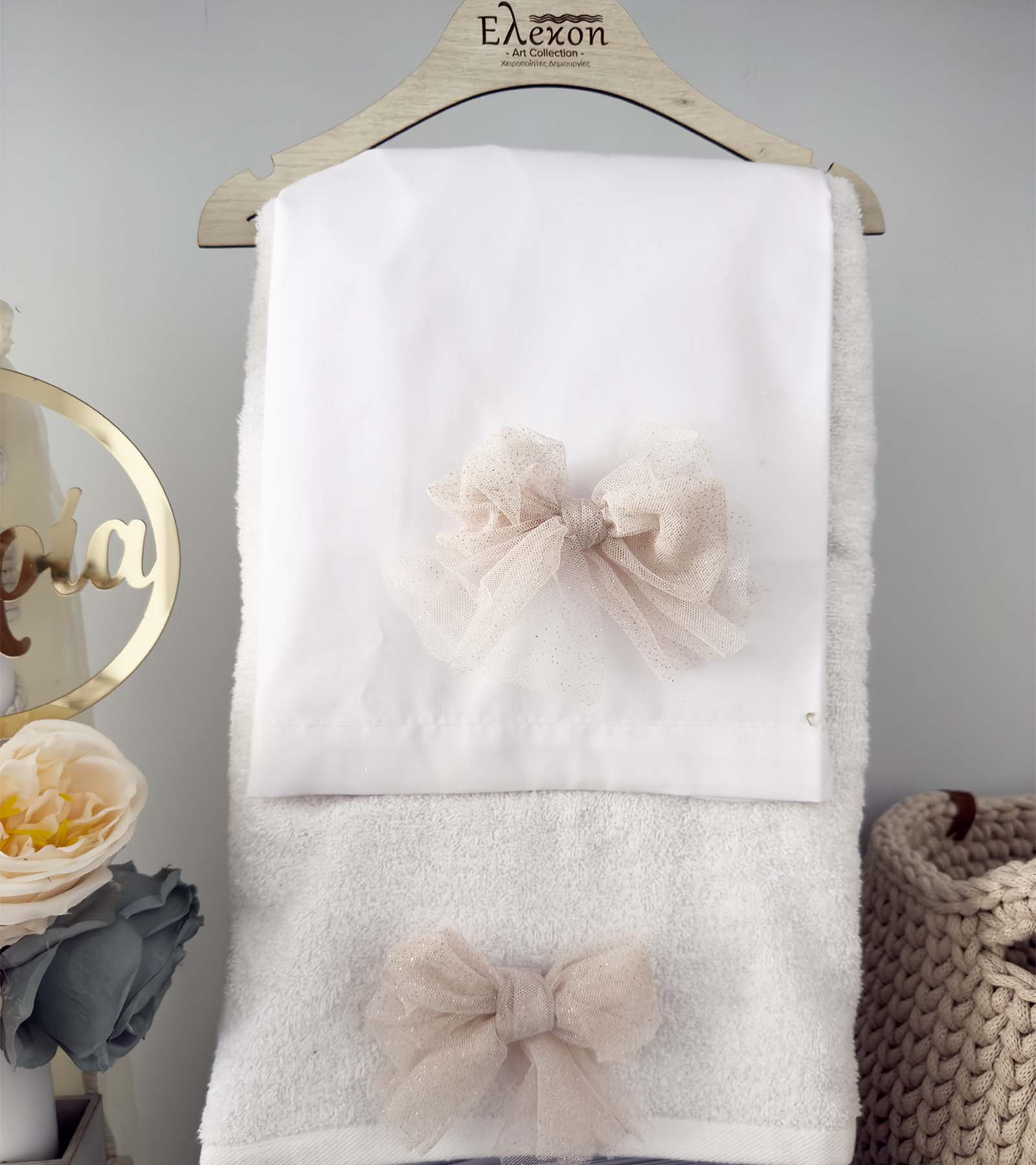 •Σετ λαδόπανο με φιόγκο (Λαδόπανο, πετσέτα , εσώρουχα)