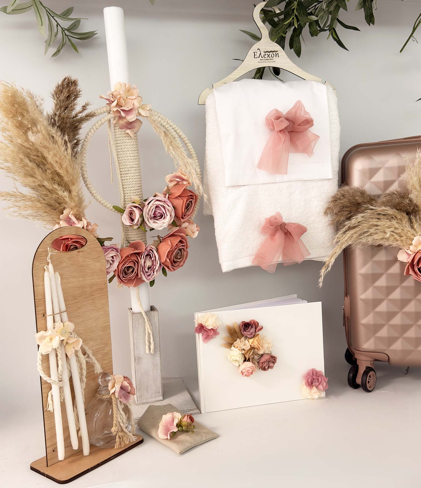 Το σετ βάπτισης για κορίτσι “Boho flowers dusty pink-beige” περιλαμβάνει :