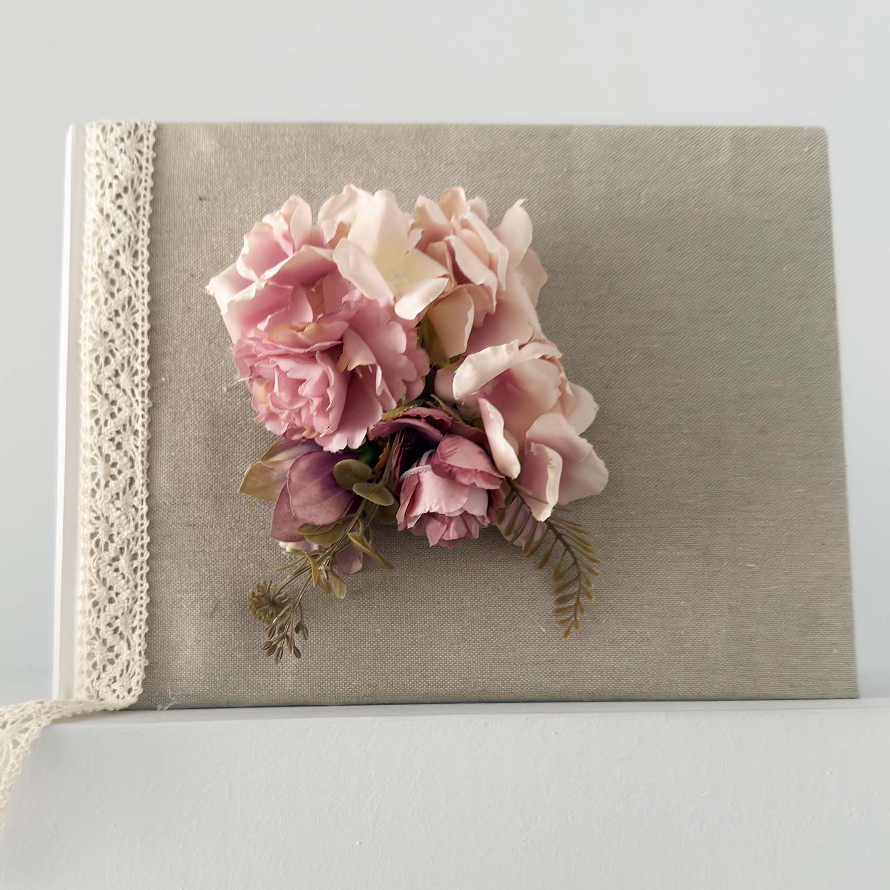 •Χειροποίητο πλεκτό καλάθι χρώματος ροζ-εκρού διακοσμημένο με κορδόνια ,λουλούδια και ξύλινο κύκνο