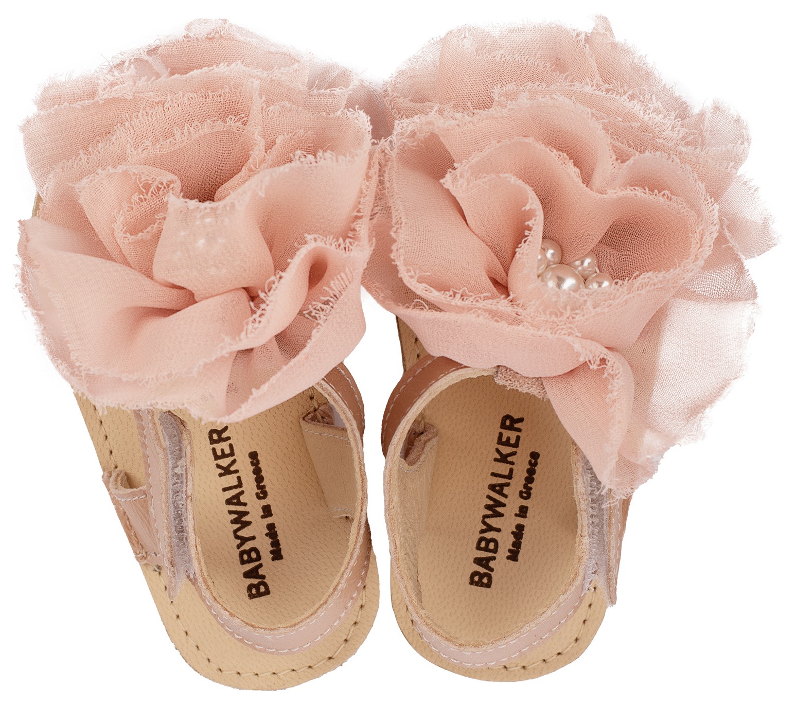 Δερμάτινο Πέδιλο Chiffon Λουλούδια σε Ροζ Χρώμα