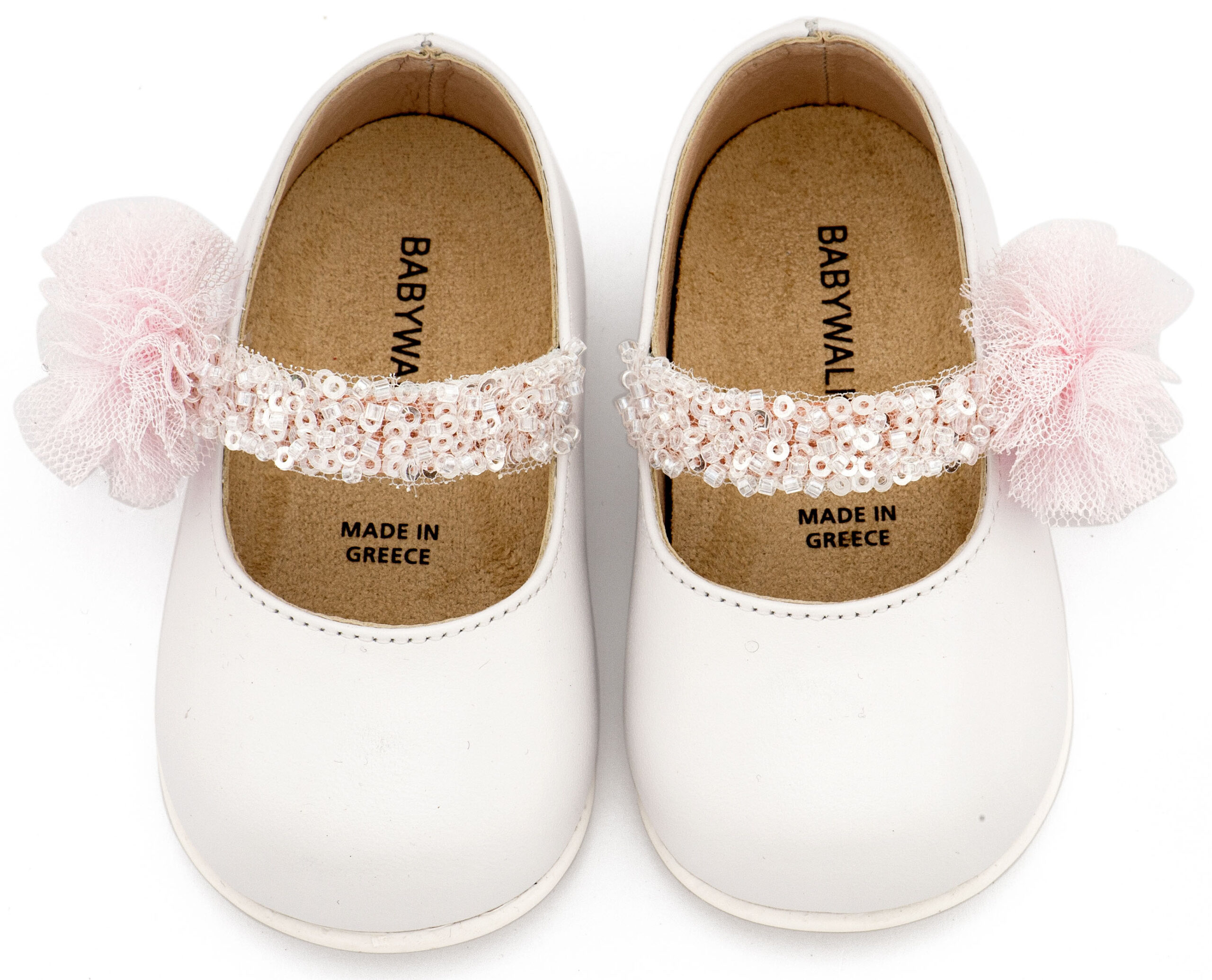 -    -  Παπούτσι Primo κορίτσι  -  Γοβάκι Μονή Μπαρέτα Διακοσμημένο με Τρέσα και Τούλινο Πον Πον PRI2657 Λευκό Ροζ