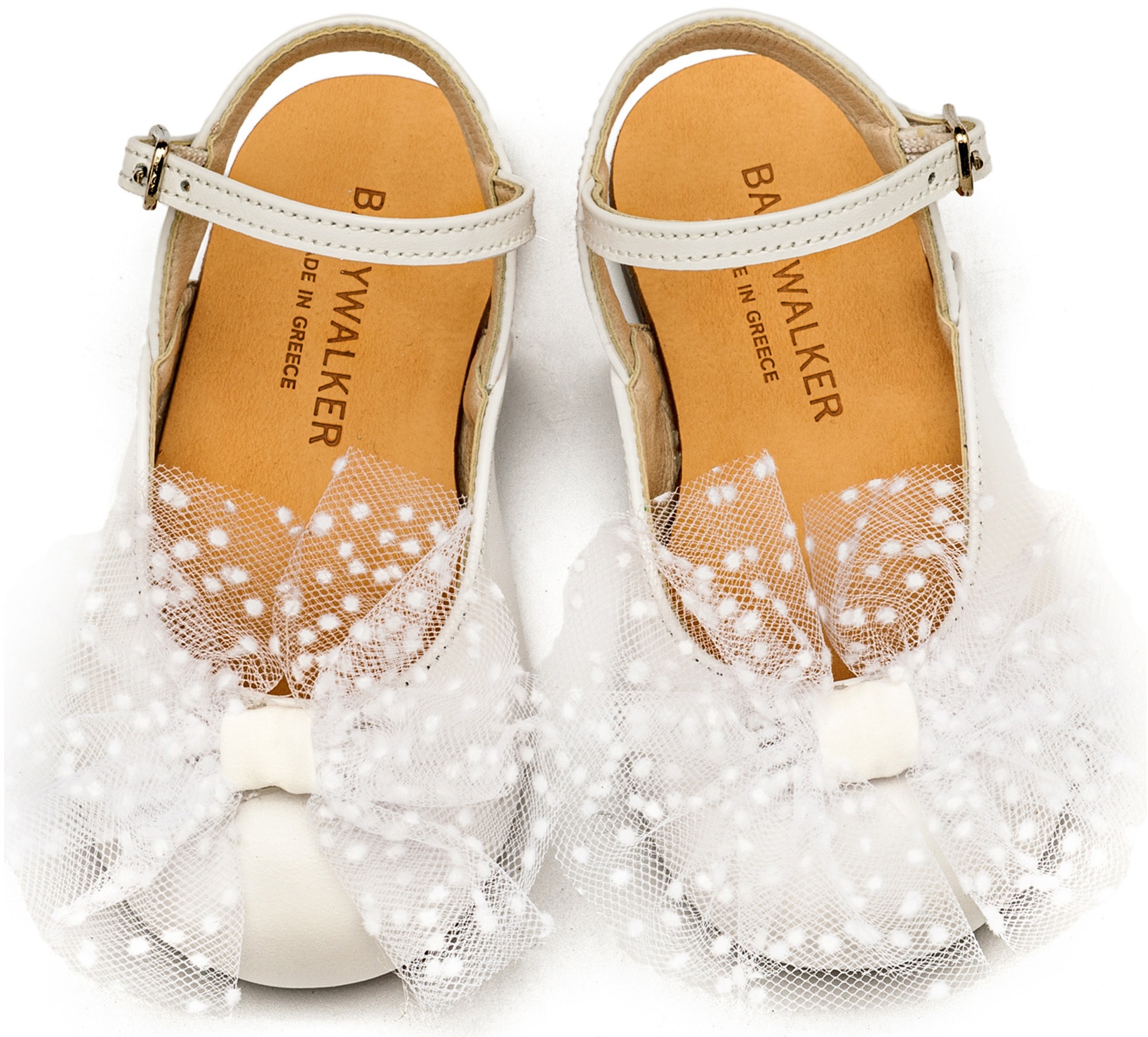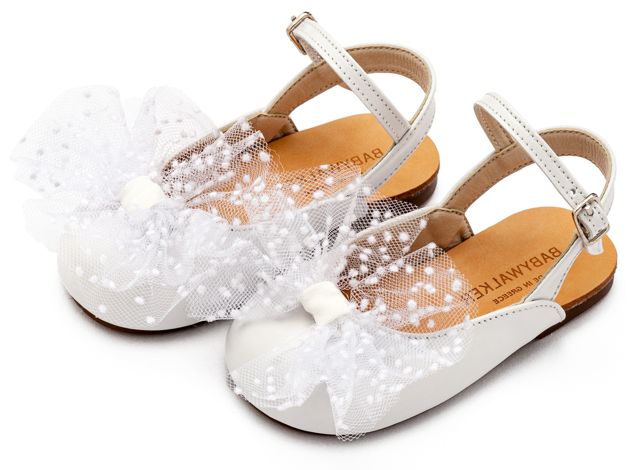 -    -  Παπούτσια για περπάτημα κορίτσι  -  Γαλλικό Σαμπό με Χειροποίητο Τούλινο Φιόγκο BW4859 λευκό
