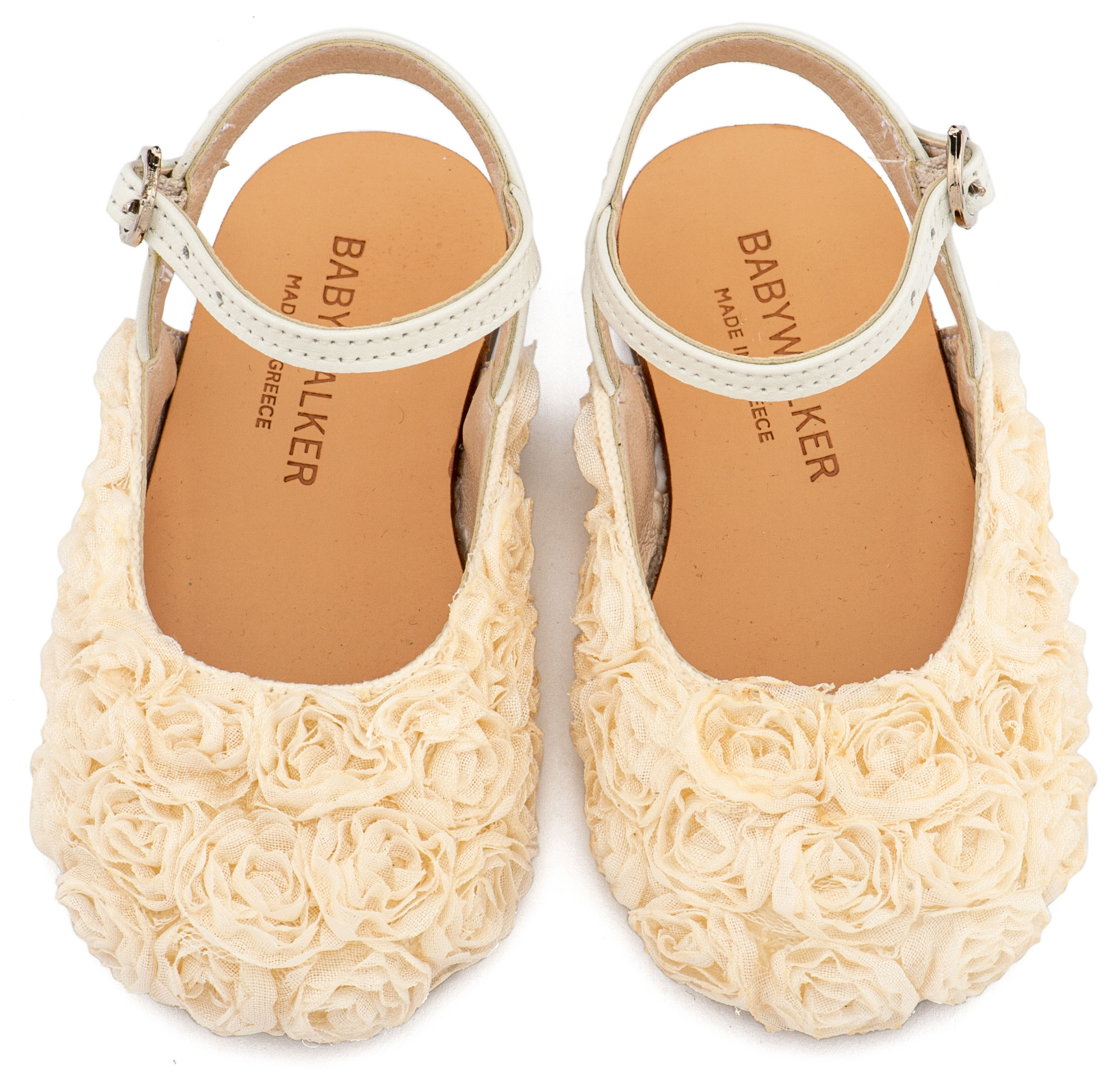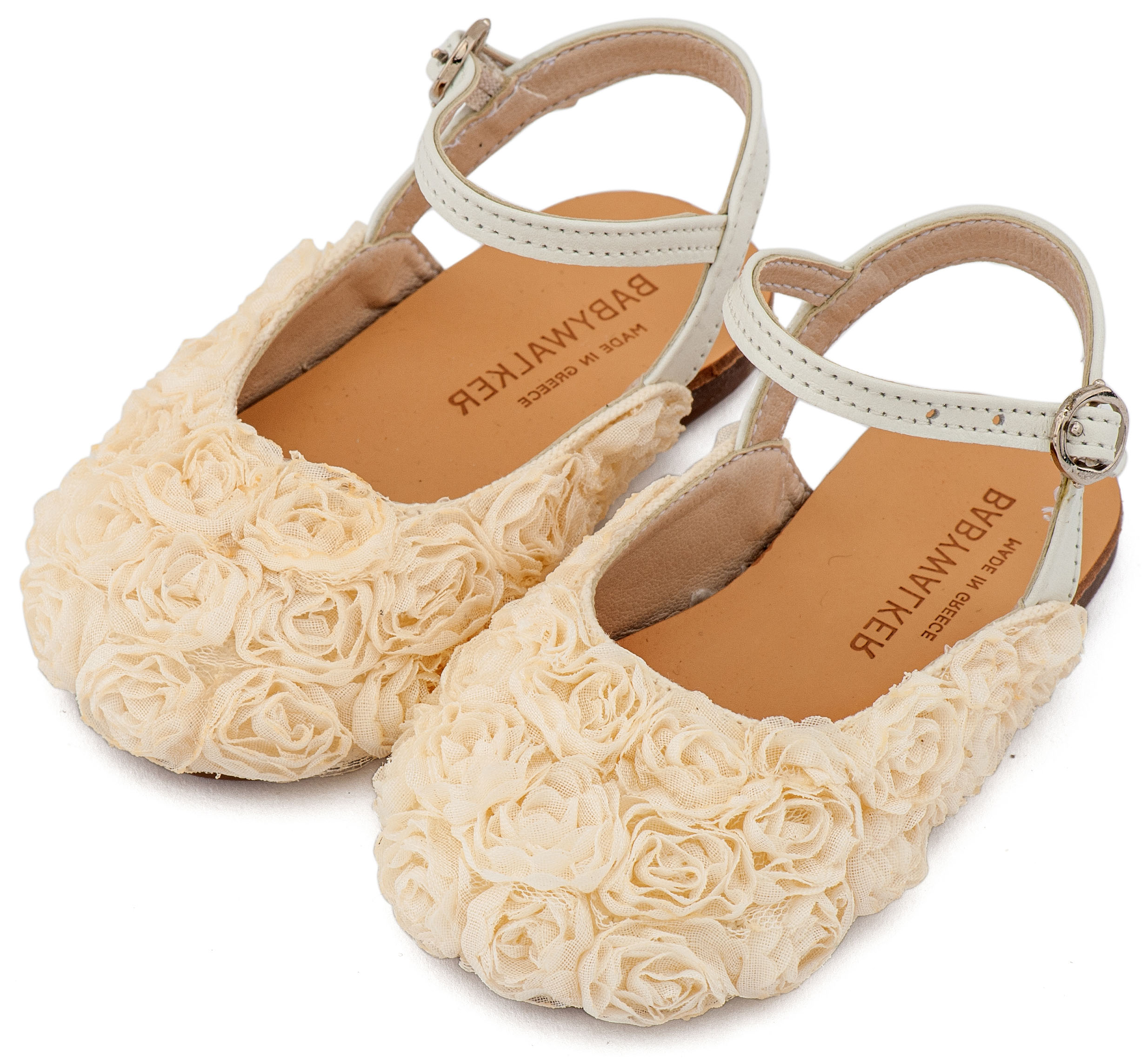-    -  Παπούτσια για περπάτημα κορίτσι  -  Γαλλικό Σαμπό με Chiffon Λουλούδια BW4884 Εκρού