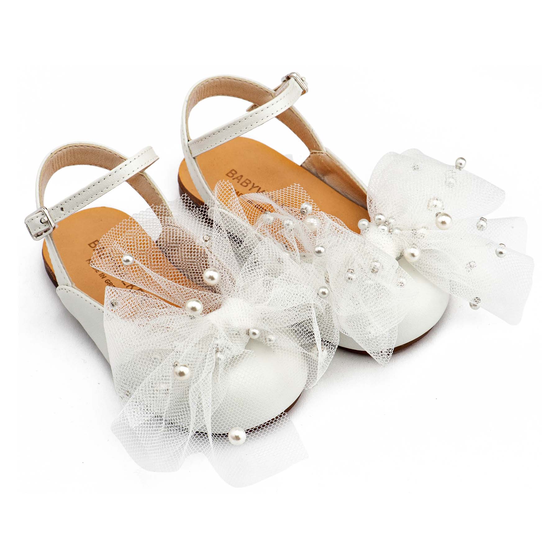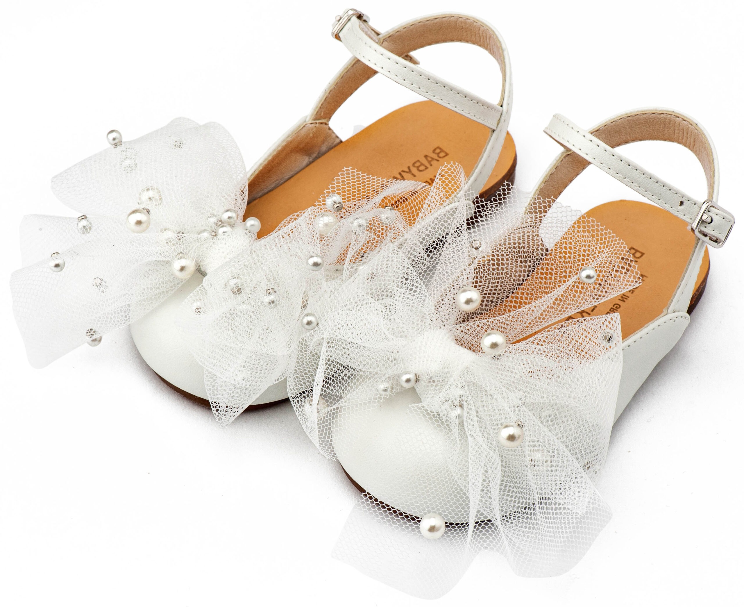 -    -  Παπούτσια για περπάτημα κορίτσι  -  Γαλλικό Σαμπό με Φιόγκο και Πέρλες BW4882 εκρού