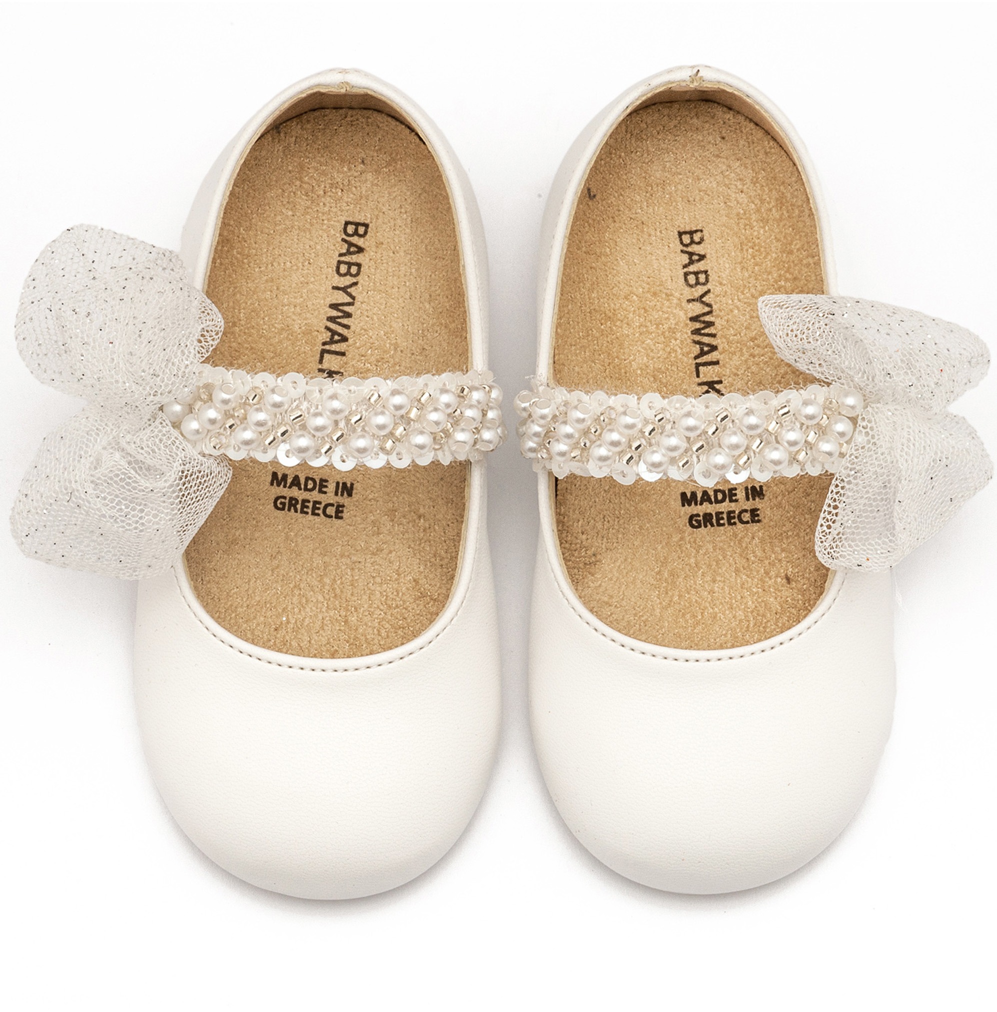 Δερμάτινο Γοβάκι Μονή Μπαρέτα Διακοσμημένη με Χειροποίητο Τούλινο Διακοσμητικό σε λευκό Χρώμα