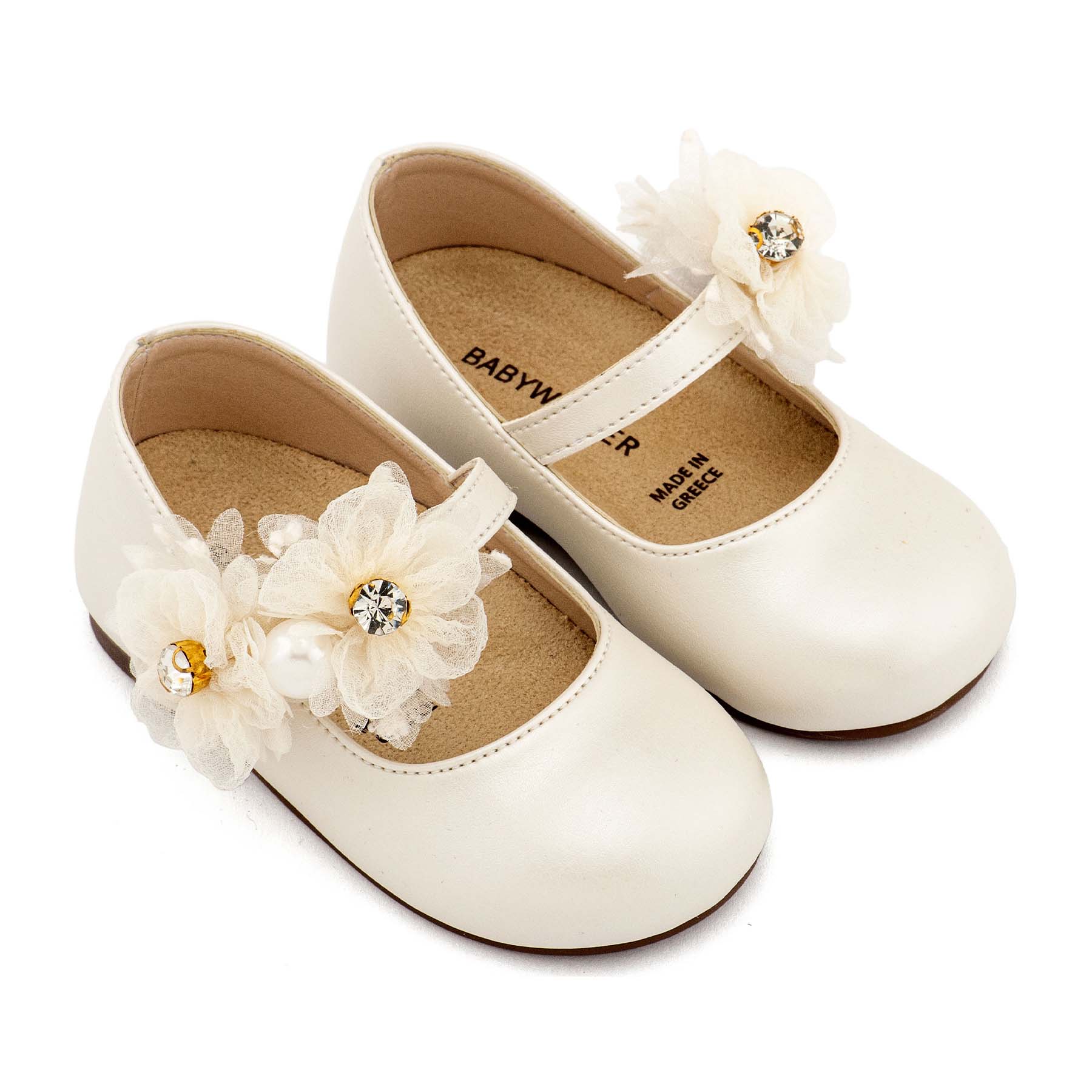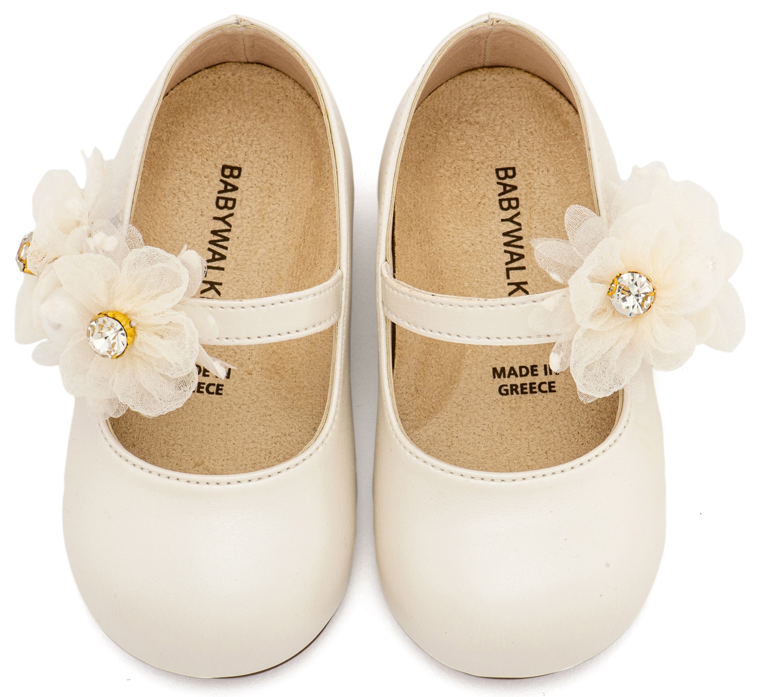 -    -  Παπούτσια για περπάτημα κορίτσι  -  Γοβάκι Μονή Μπαρέτα με Διακοσμητικό Οργάντζας BS3604 Εκρού