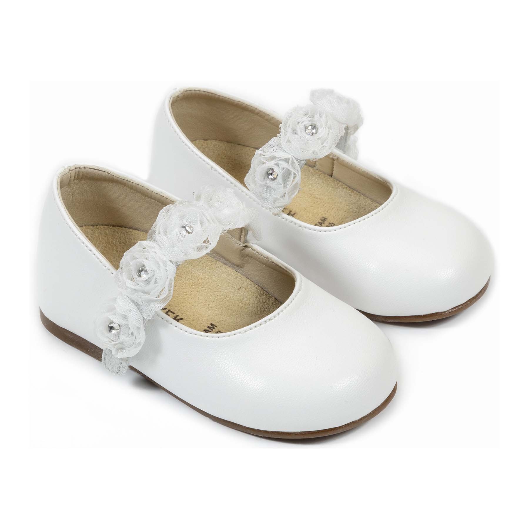 -    -  Παπούτσια για περπάτημα κορίτσι  -  Γοβάκι Μονή Μπαρέτα με Λουλούδια BS3523 Λευκό
