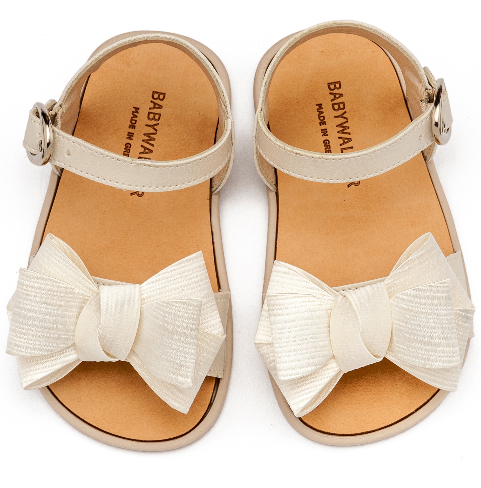 -    -  Παπούτσια για περπάτημα κορίτσι  -  Πέδιλο με Υφασμάτινο Φιόγκο BS3592 Εκρού